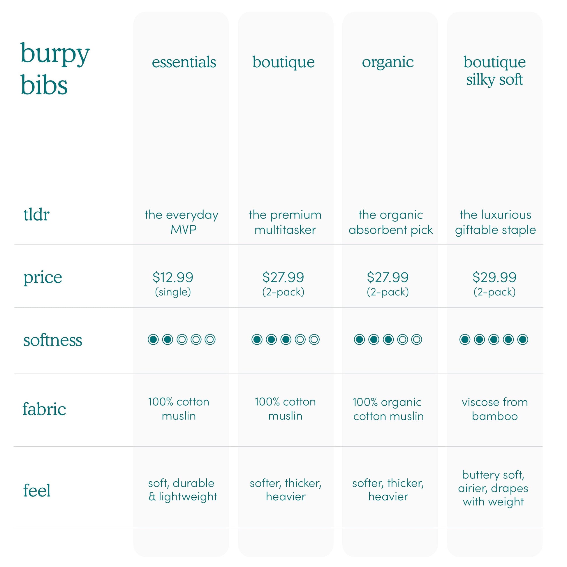 - Dual-function as both a burp cloth and a full-coverage bib