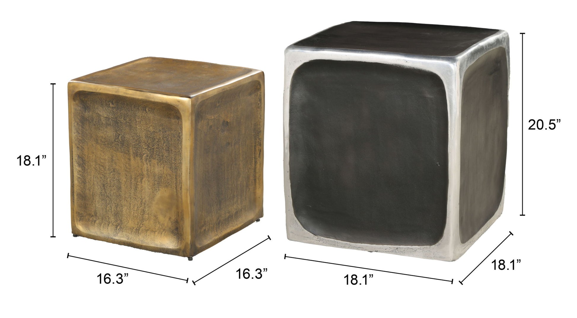 - (1) 18.1" W x 18.1" D x 20.5" H (2) 16.3" W x 16.3" D x 18.1" H