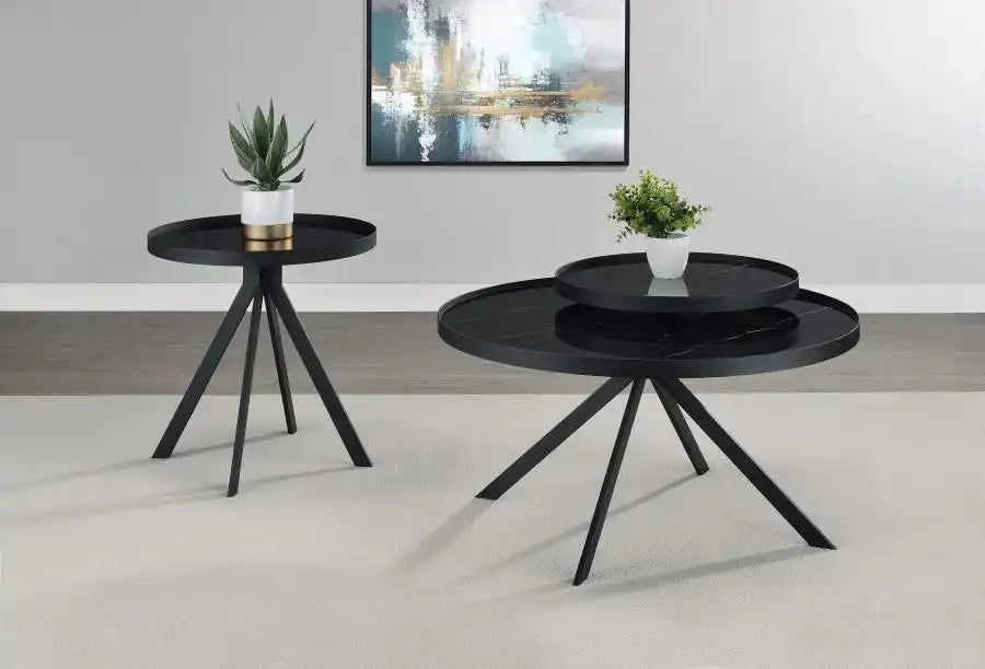 Briggs - 2 Piece Round Coffee And End Table Set - Black