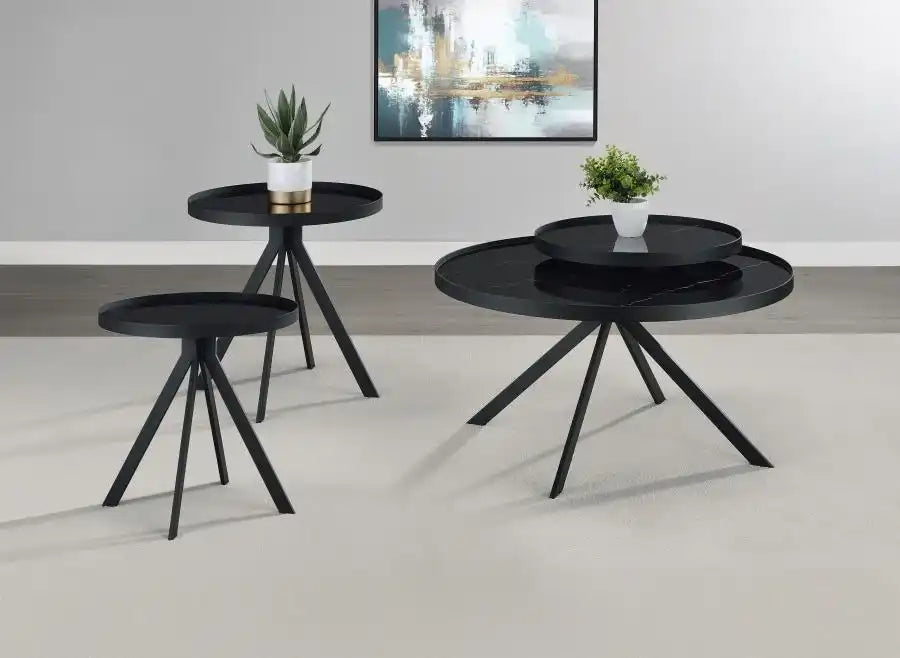 Briggs - 3 Piece Round Coffee And End Table Set - Black