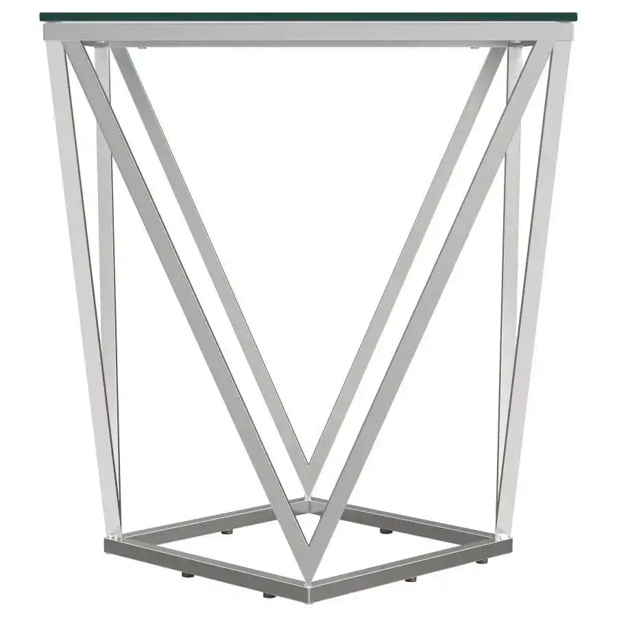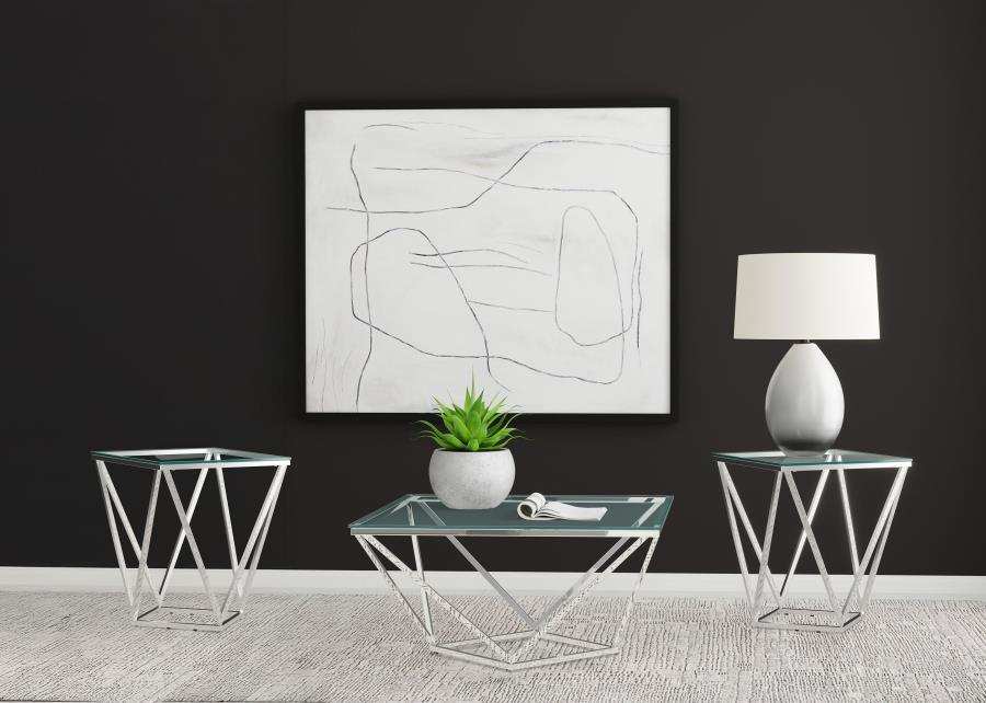 This modern coffee table set features a bold geometric design, combining polished nickel-finished steel bases with clear tempered glass tops. The tempered glass surfaces are scratch-resistant and easy to maintain, making them ideal for everyday use. The open-frame design enhances the airy, contemporary aesthetic, perfect for minimalist or industrial-inspired interiors. Crafted with durable materials and an elegant design, this set brings style and functionality to any modern living space.