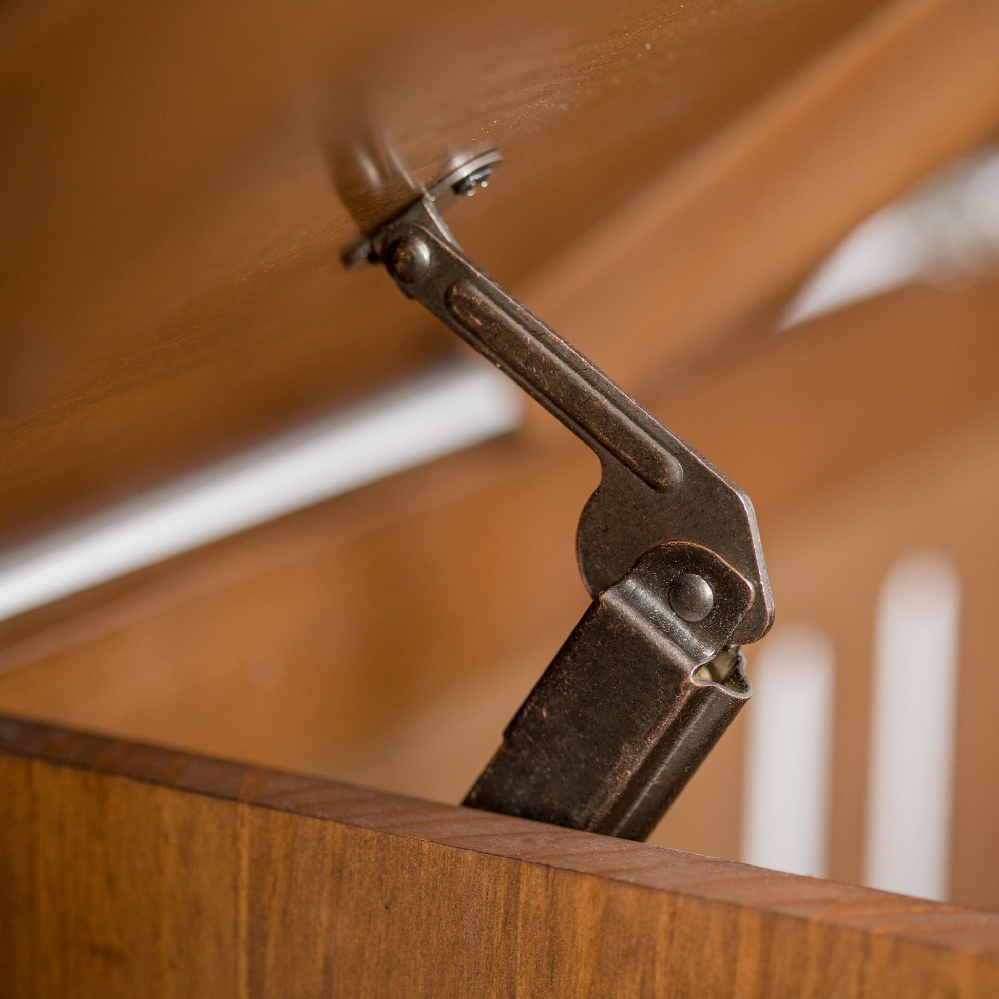 - Features a lift-up lid that opens using safety hinges to reveal 2 large internal storage compartments