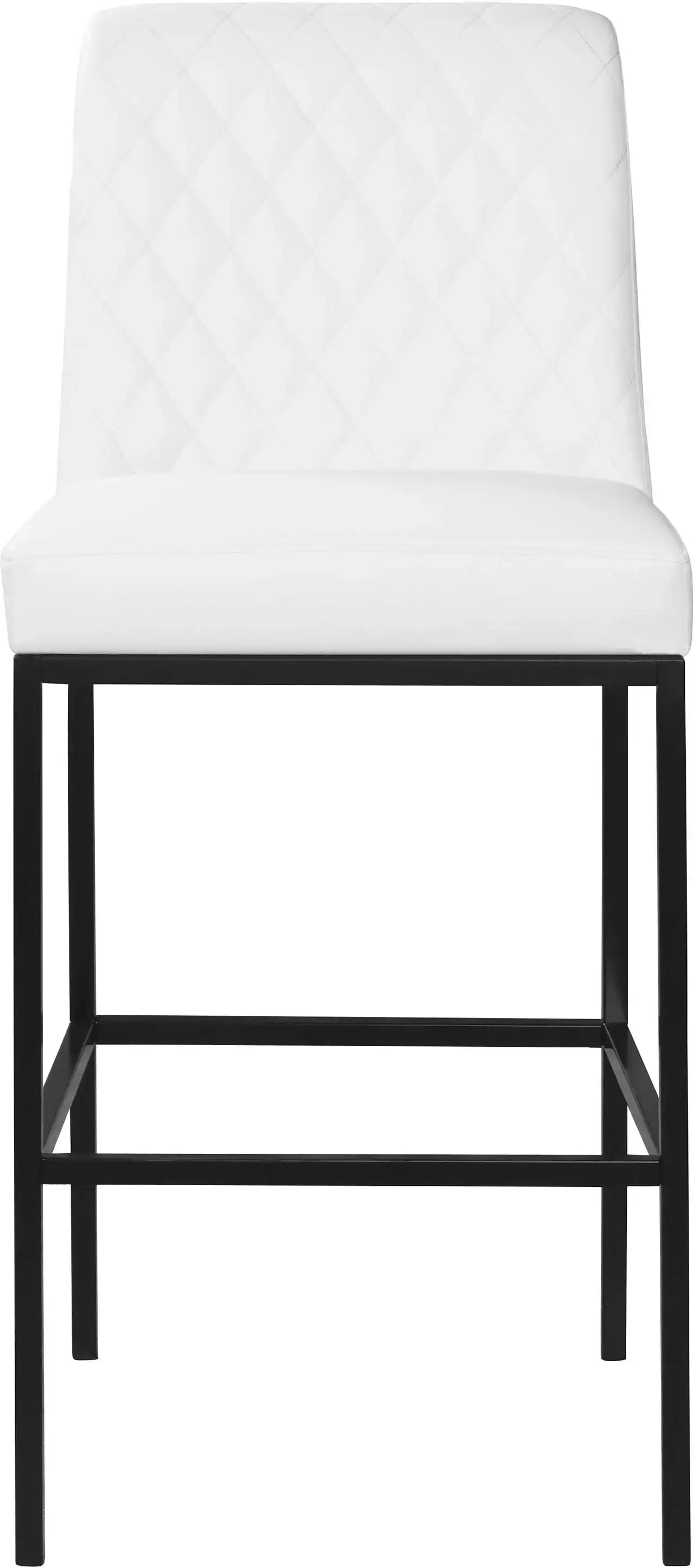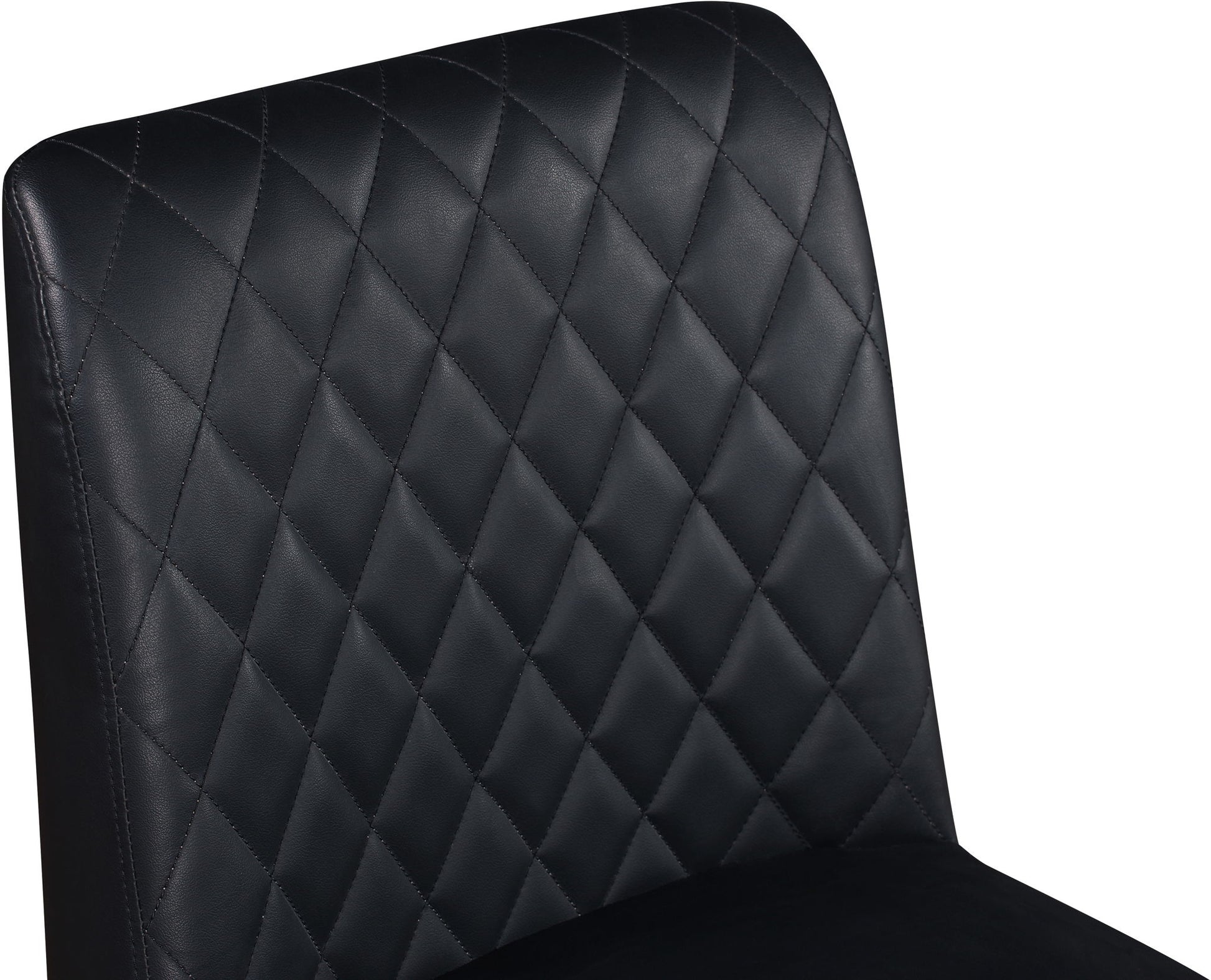 Give your dining room a revamp with this Bryce Faux Leather Dining Chair from Meridian Furniture. This handsome chair features an armless design with heavily padded seat and back cushions, ensuring that guests stay comfortable all the way through dessert. The back is quilted for added aesthetic appeal, and it's upholstered in faux leather for the luxury look of leather without the maintenance requirements. A metal frame and matte metal legs complete the look and provide sturdy support.