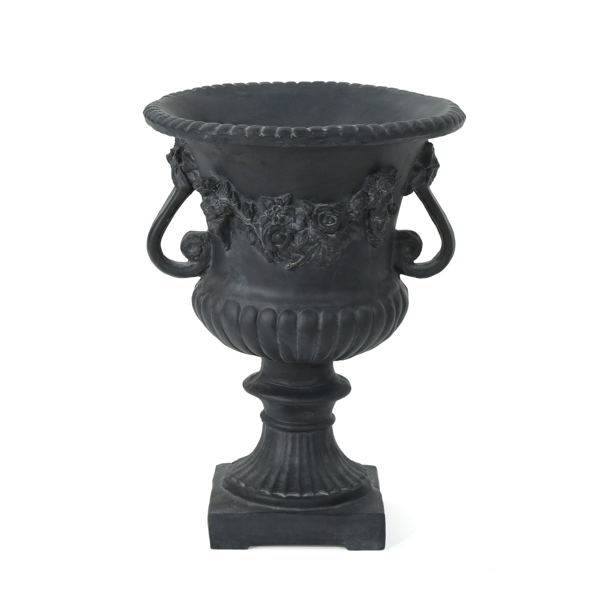 The Buena Vista Urn is a decorative planter designed for enhancing outdoor spaces such as patios and gardens as well as indoor areas. It combines functional plant display with a timeless antique black finish for versatile style.