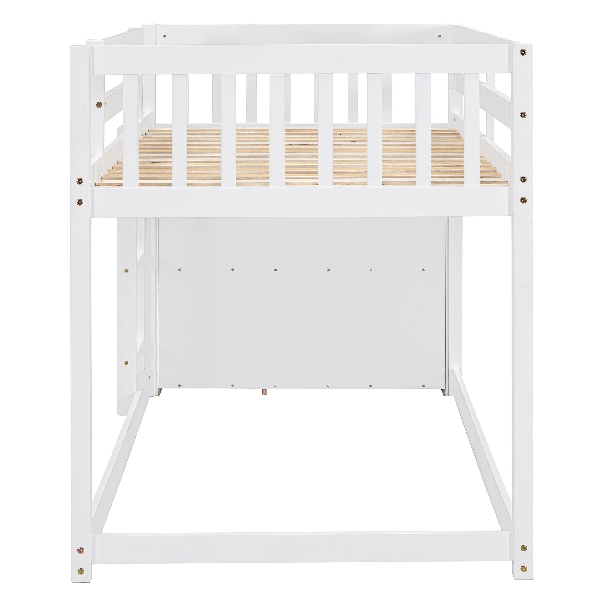 Twin Over Twin Classic Bunk Bed With 4 Drawers And 3 Shelves - White
