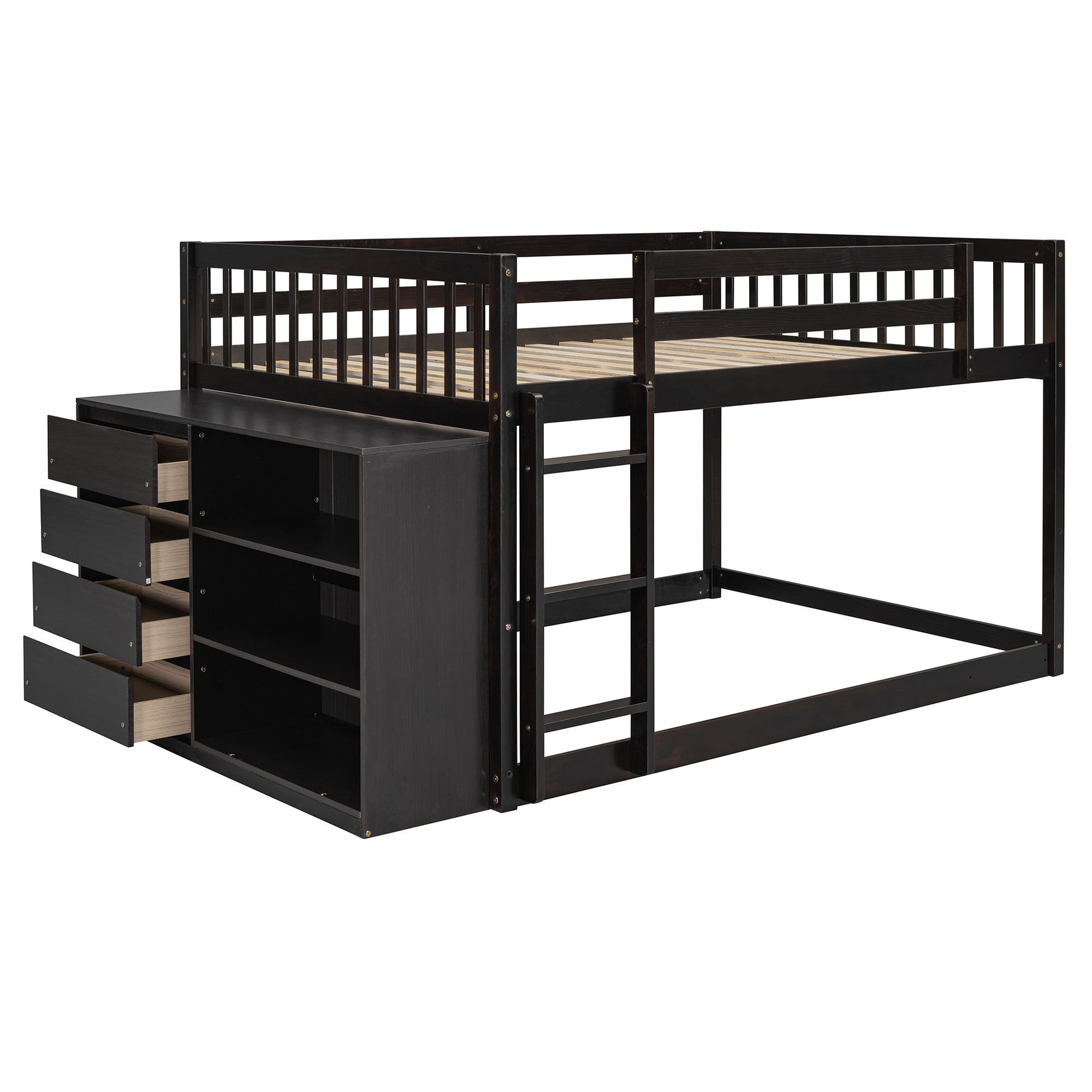 Full Over Full Bunk Bed With Storage Drawers And Shelves - Espresso