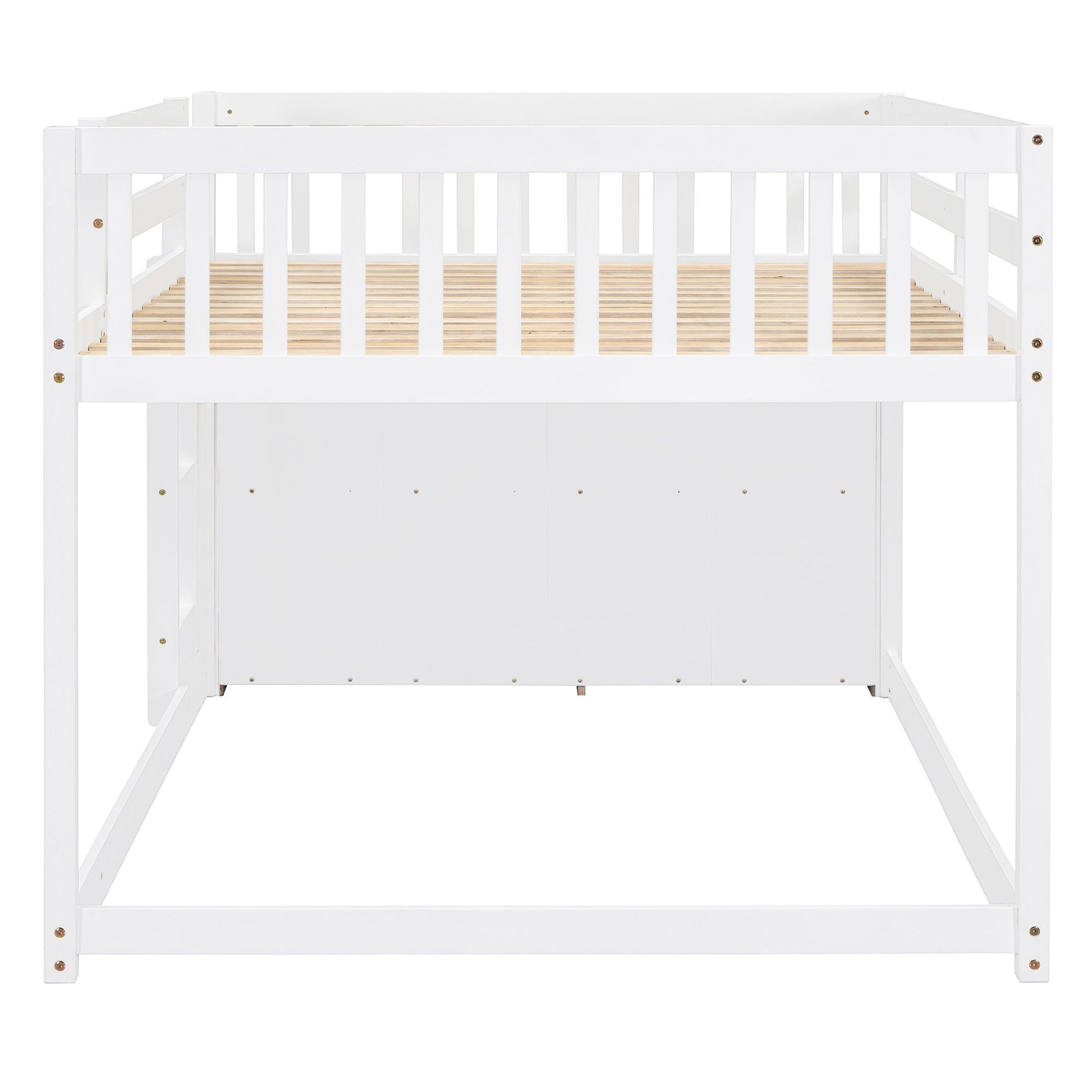 Full Over Full Bunk Bed With Storage And Shelves And Elegant Durable Design - White