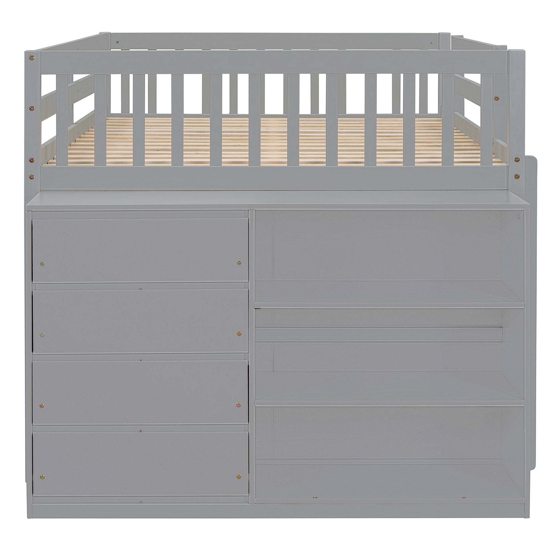 Full Over Full Bunk Bed With 4 Drawers And 3 Shelves - Gray
