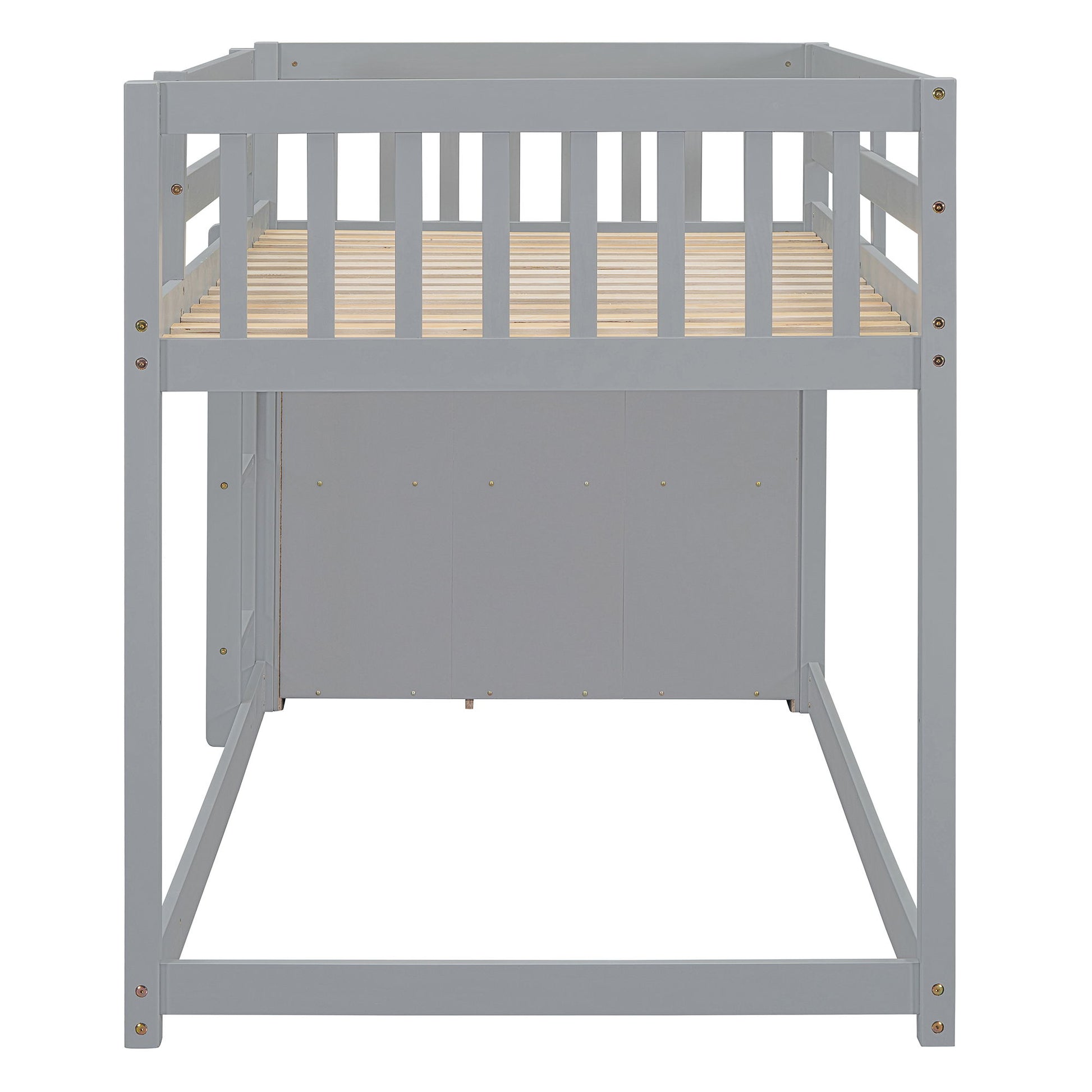 Twin Over Twin Classic Bunk Bed With 4 Drawers And 3 Shelves - Gray