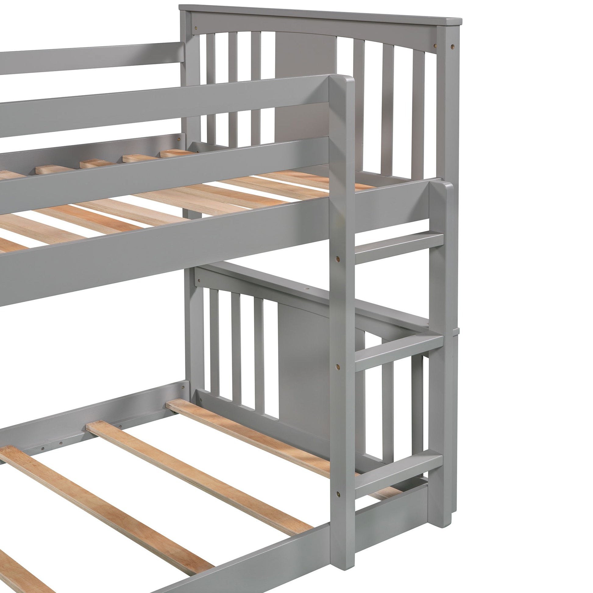 Twin Over Twin Bunk Bed With Slide And Ladder - Gray