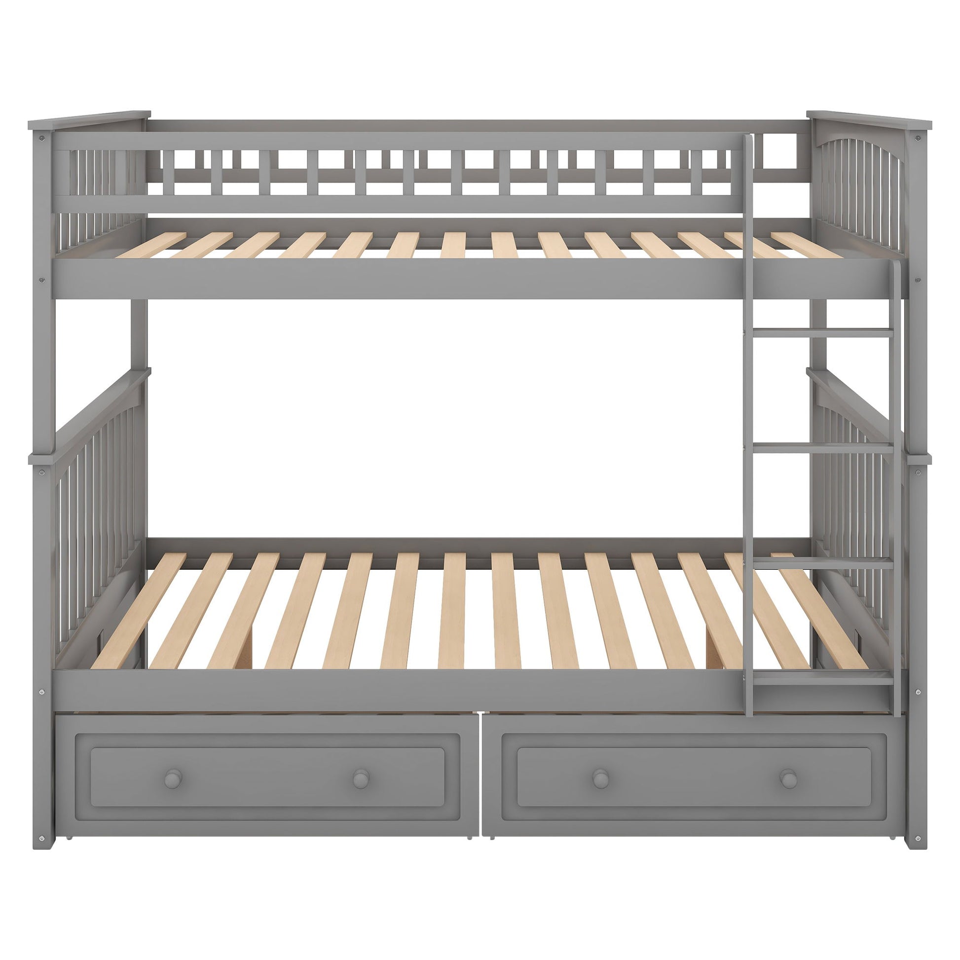 Full Over Full Bunk Bed With Drawers, Convertible Design - Gray