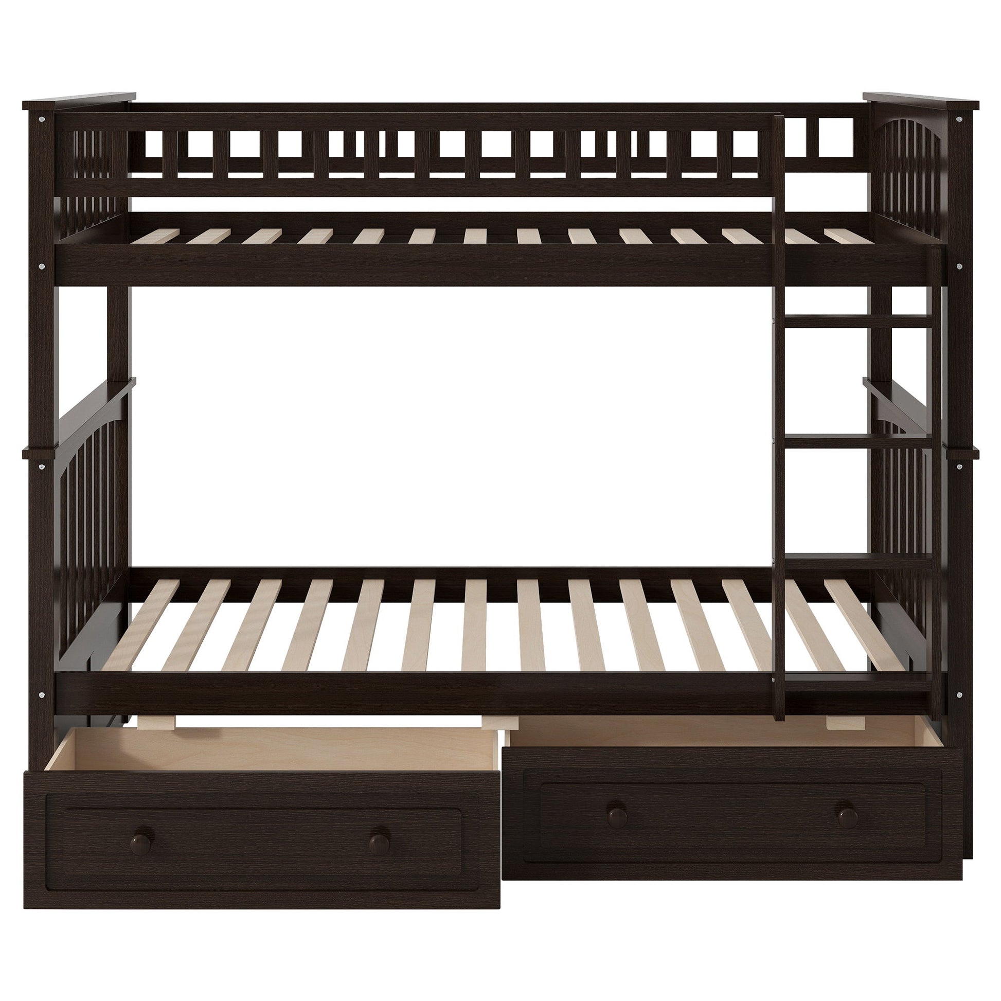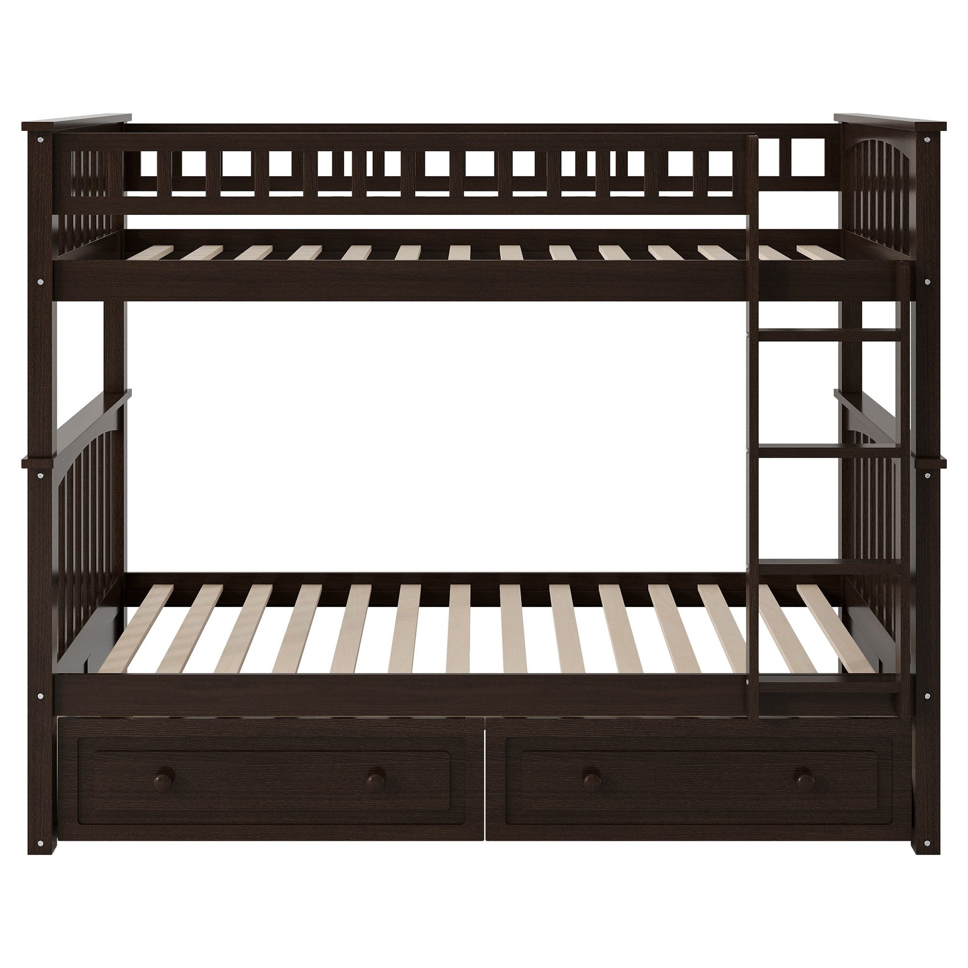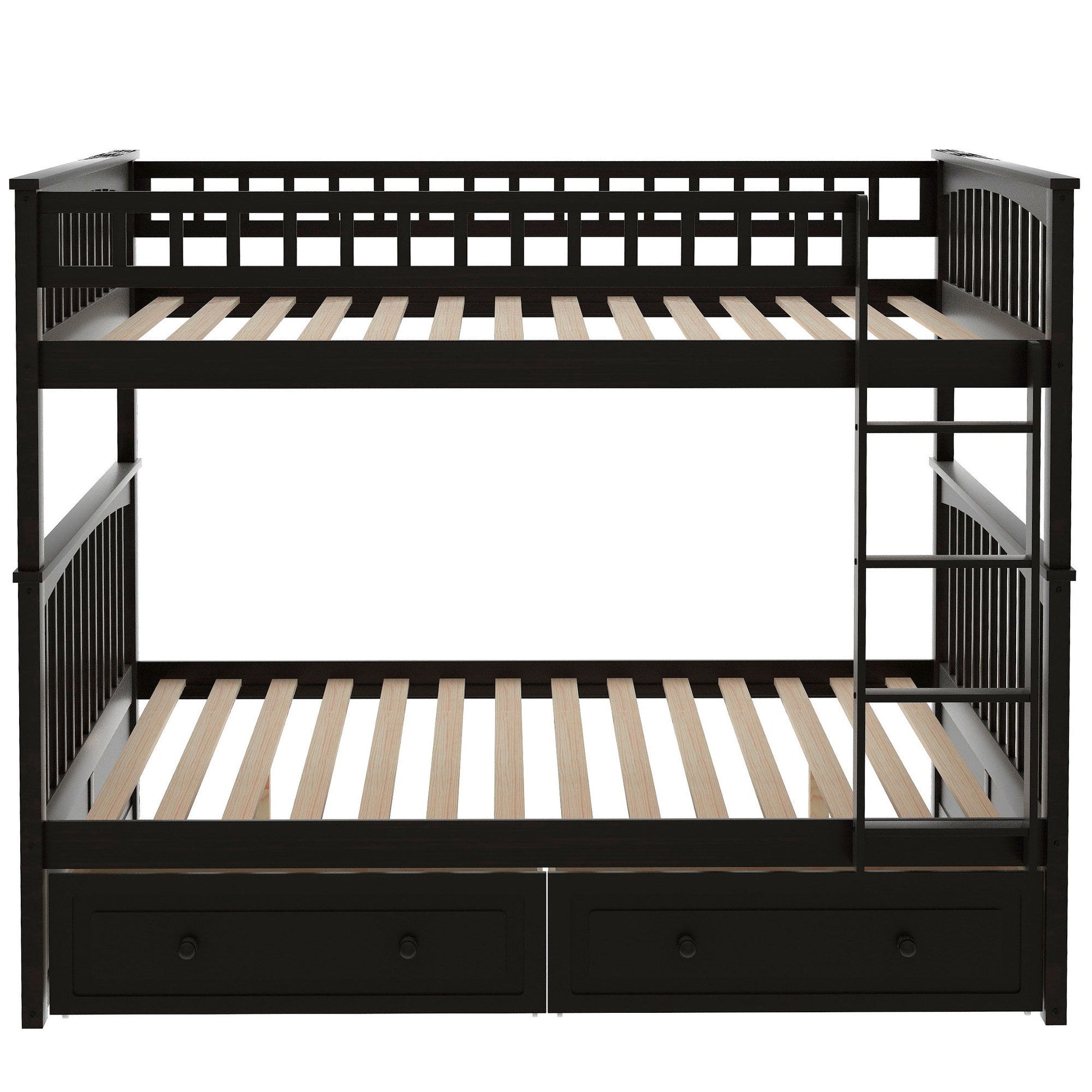 Full Over Full Bunk Bed With Drawers, Convertible Design - Espresso