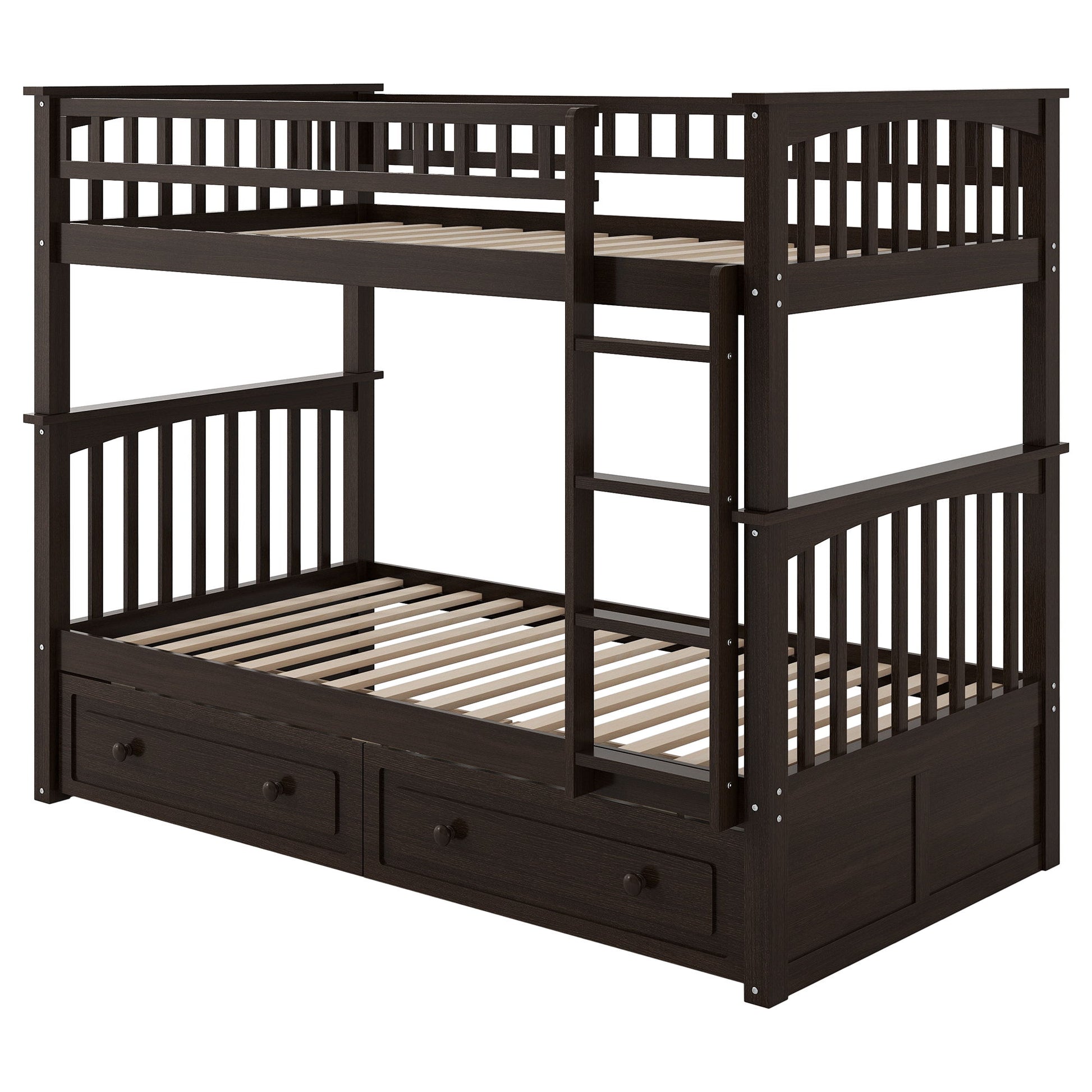 Twin Over Twin Bunk Bed With Drawers, Convertible Design - Espresso
