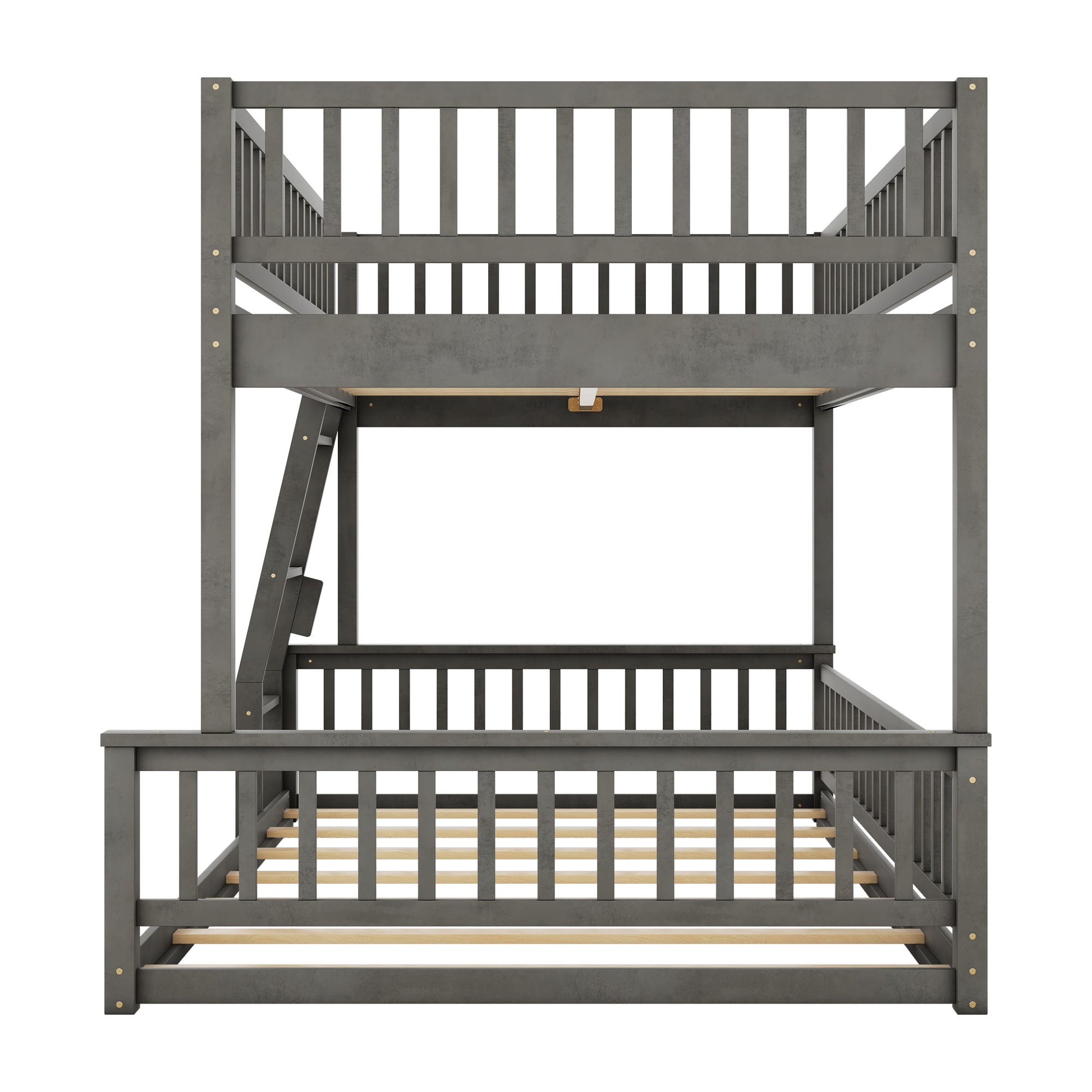 Full Long Over Queen Bunk Bed With Ladder And Guardrails - Gray