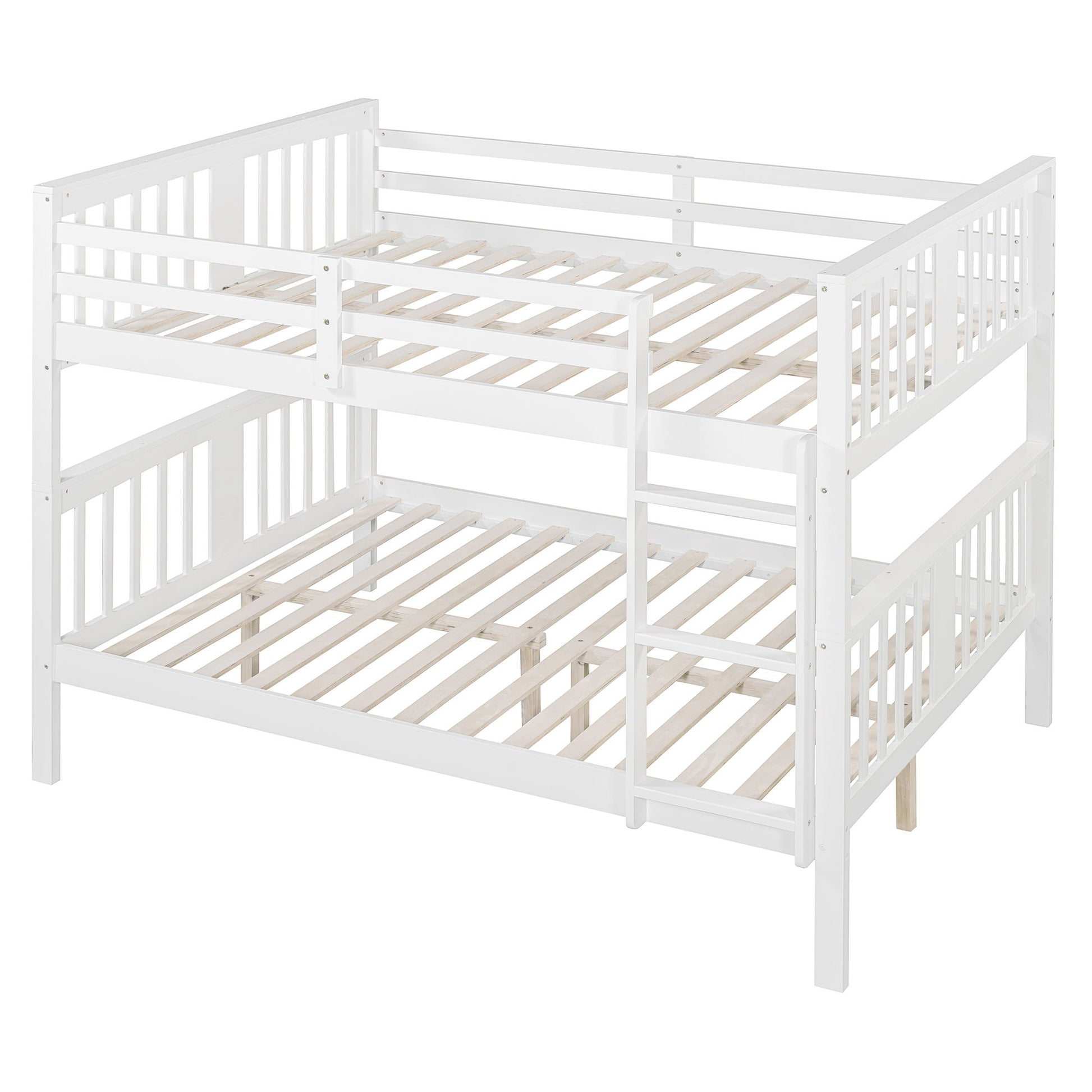 Full Over Full Bunk Bed With Ladder For Bedroom - White