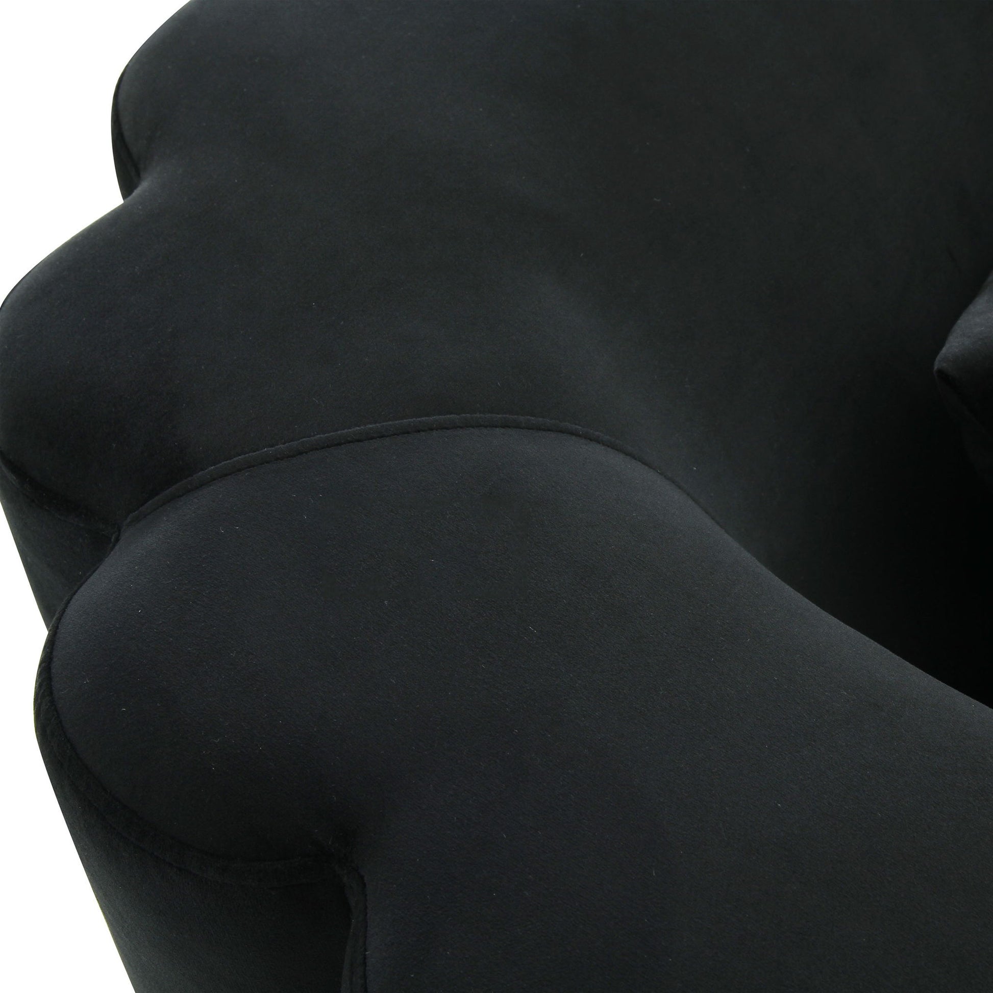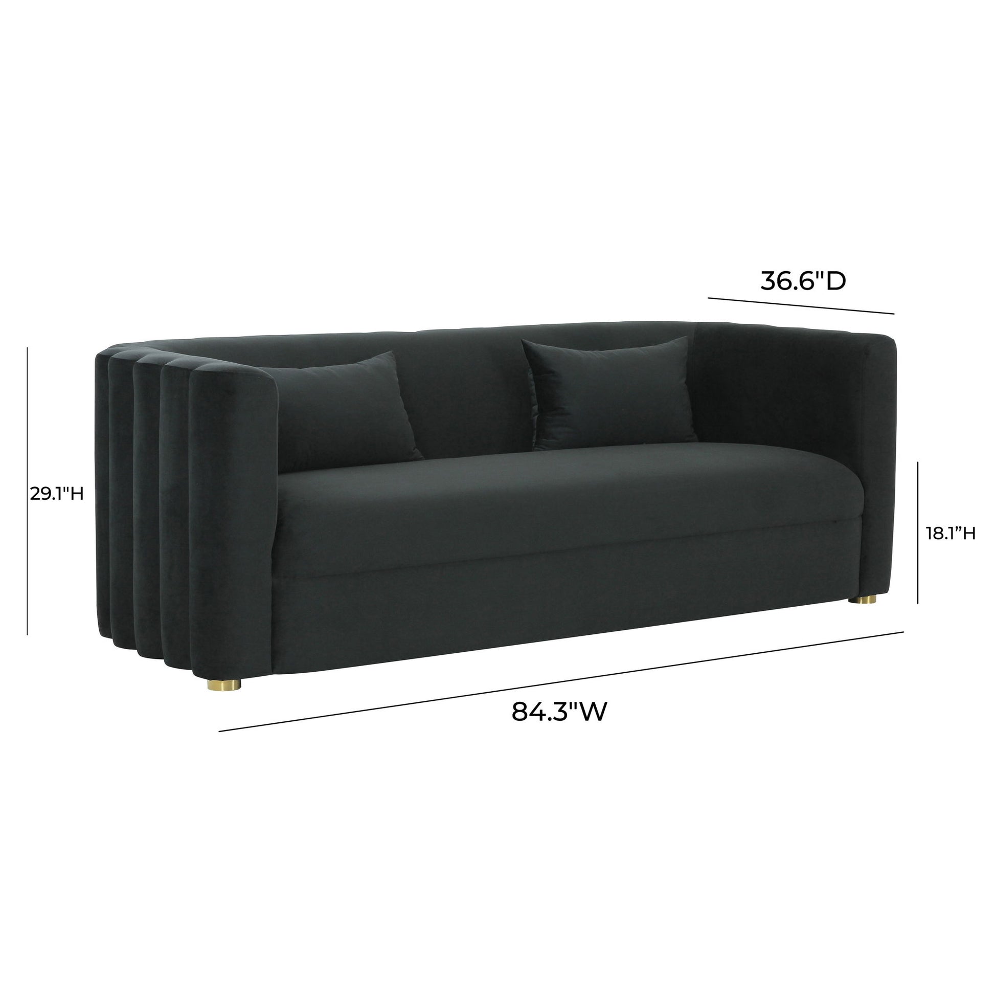 Graceful and eye-catching, the Callie Sofa is the epitome of modern glamour. Its curved silhouette, scalloped tufted back and beautiful stainless steel legs, add character and style to any room. Available in multiple color options.