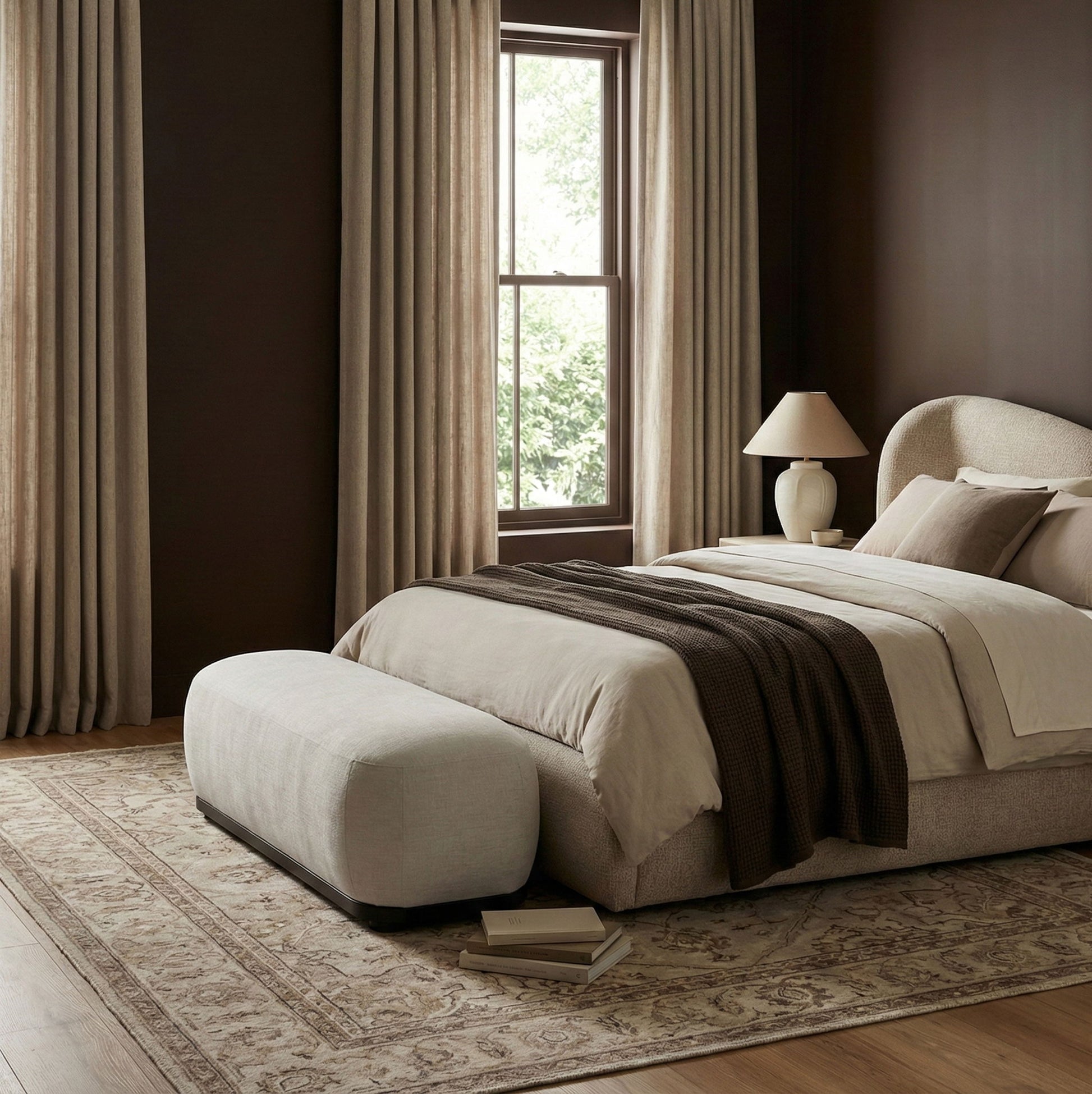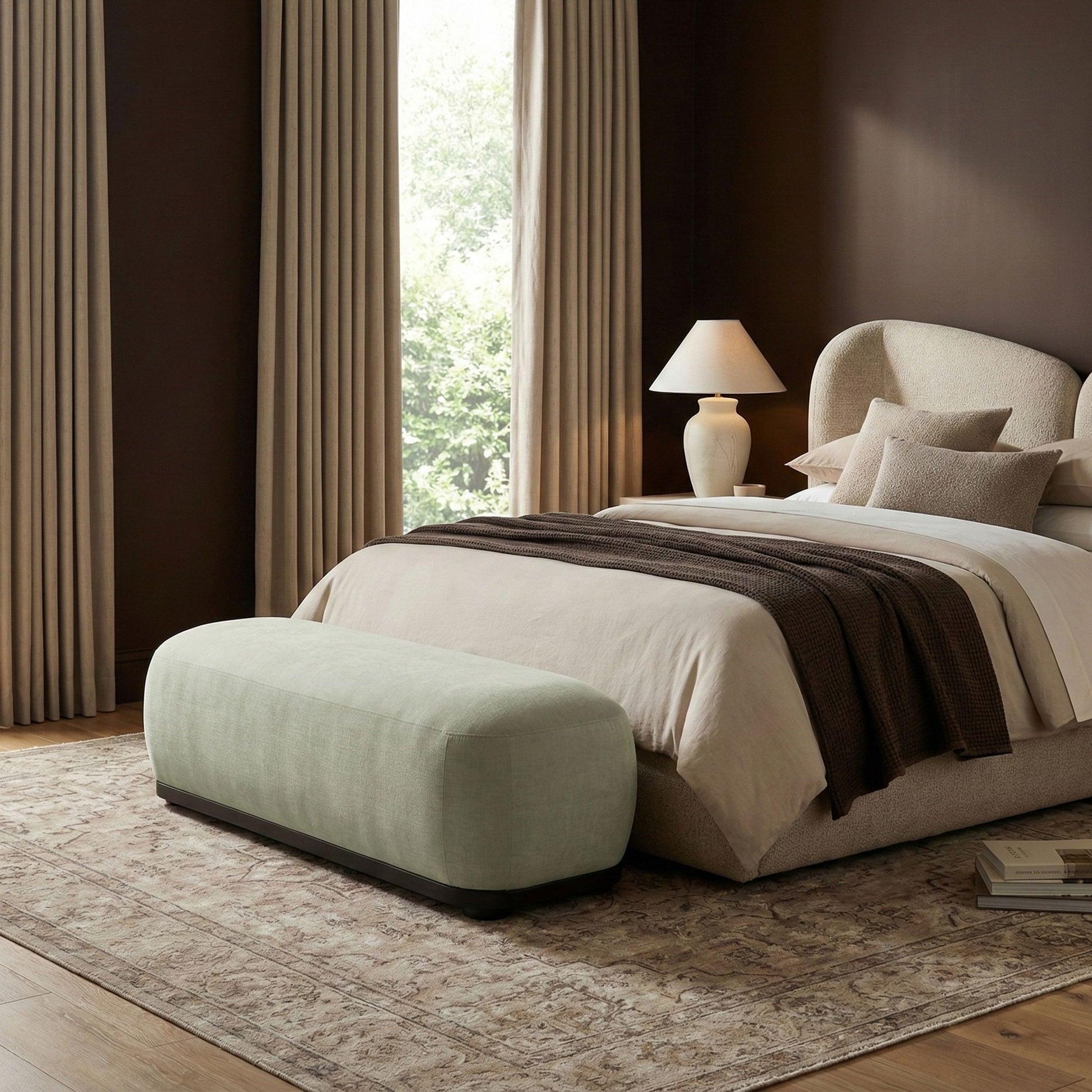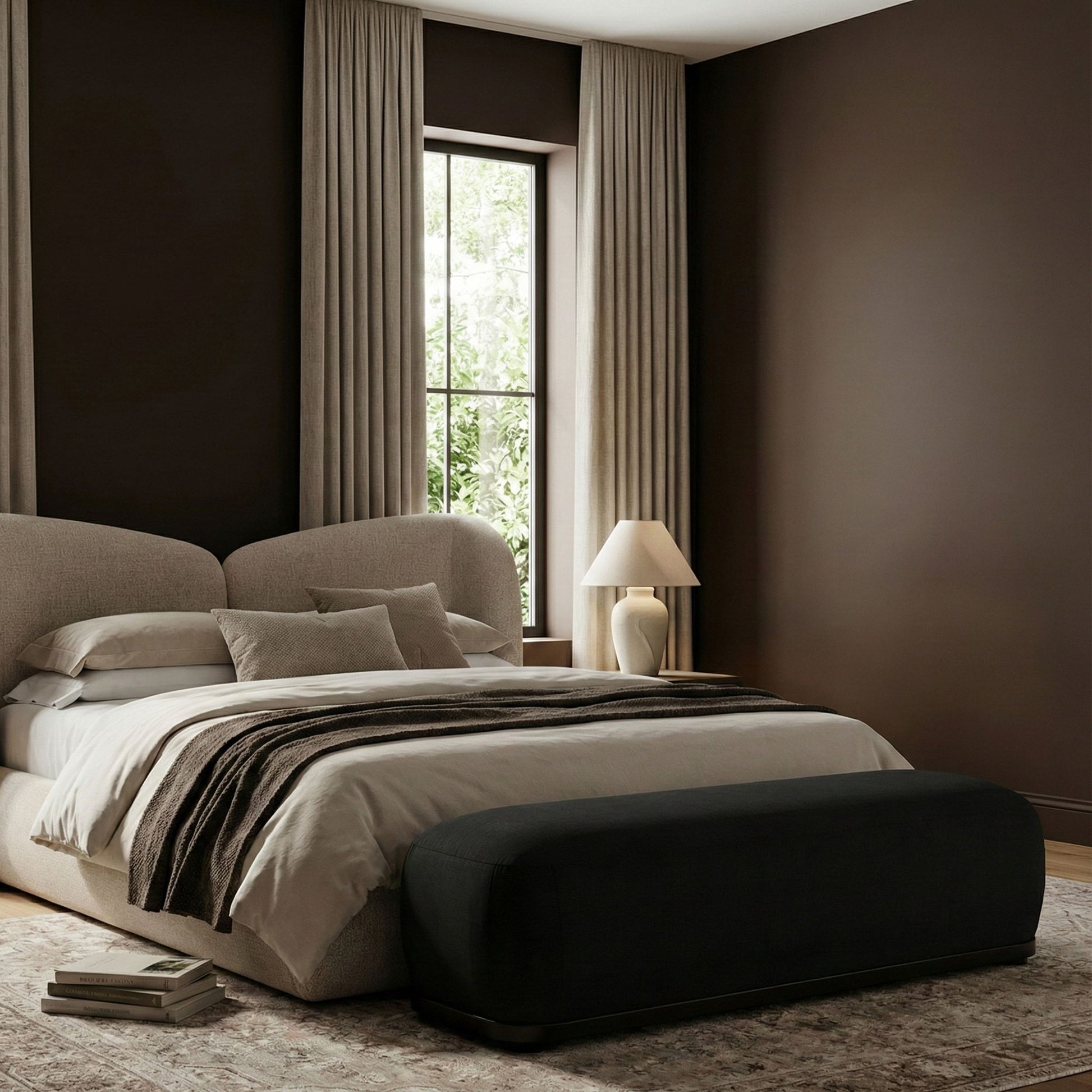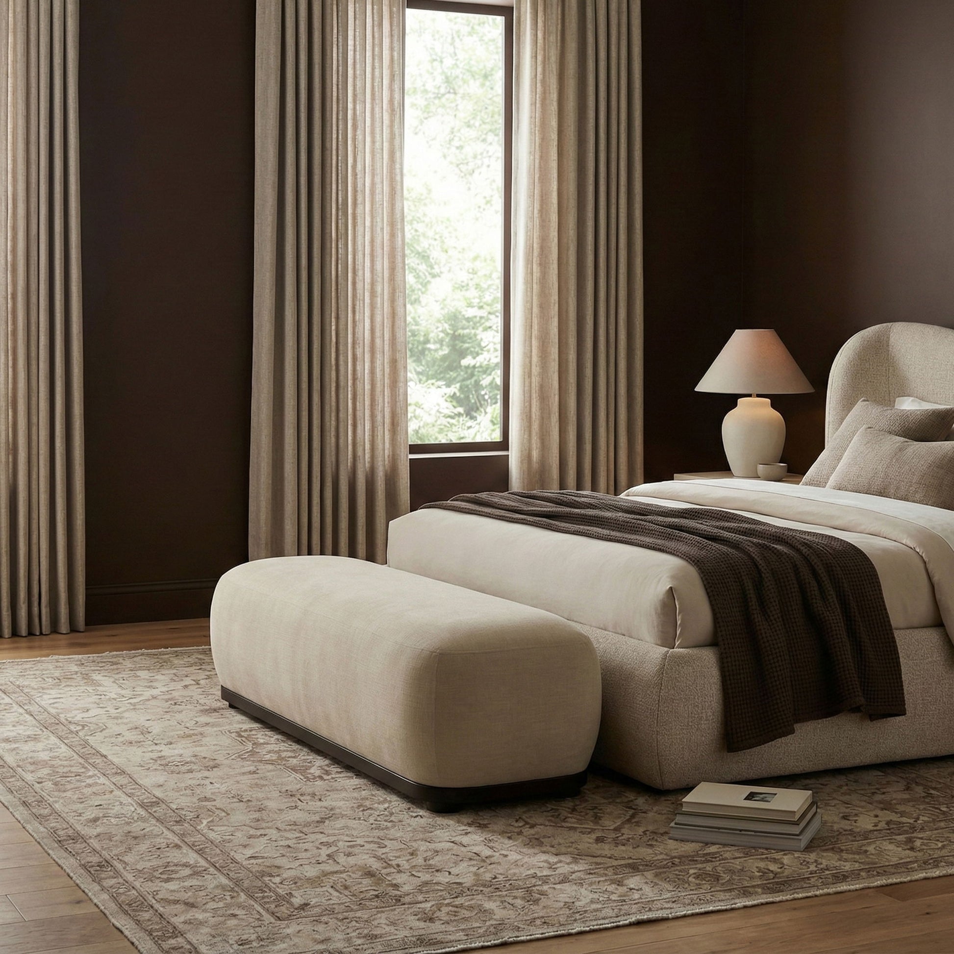 Calum - Bench With Black Frame - Beige