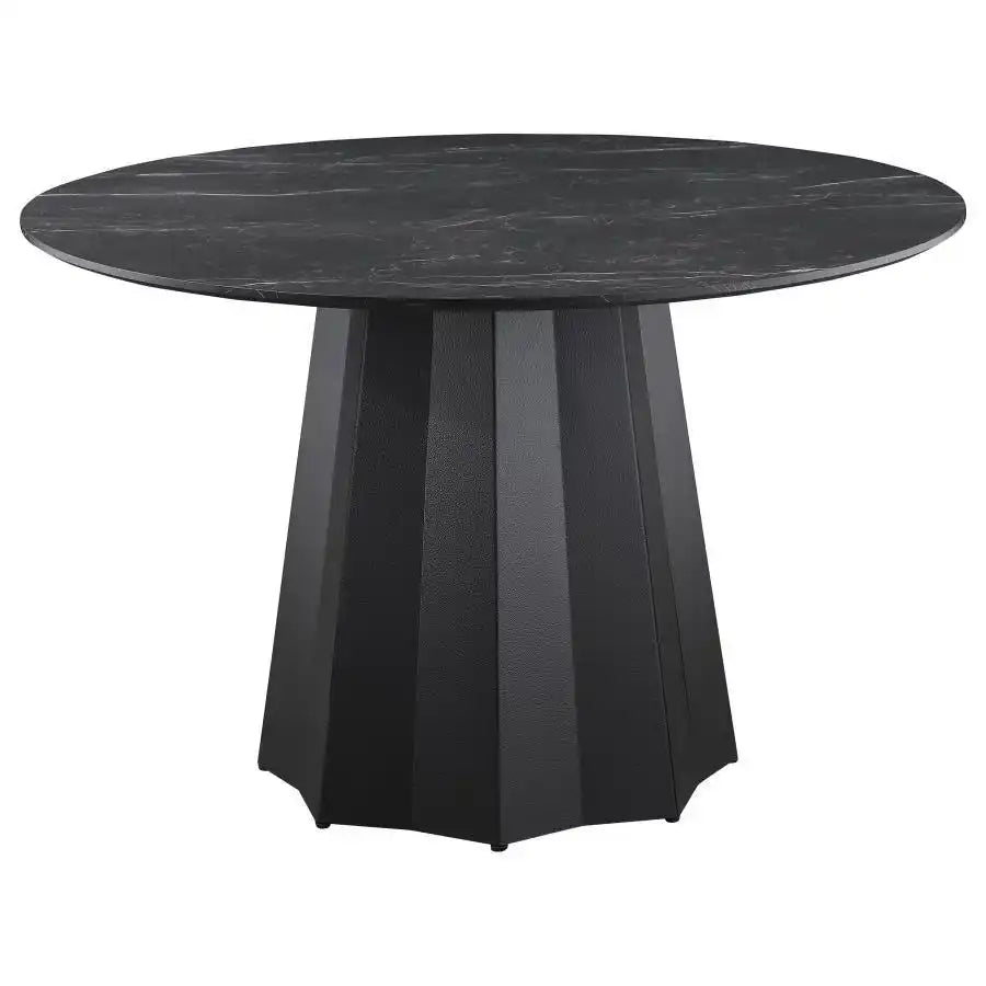 Camden - 5 Piece Round Faux Marble Top Dining Table Set - Black