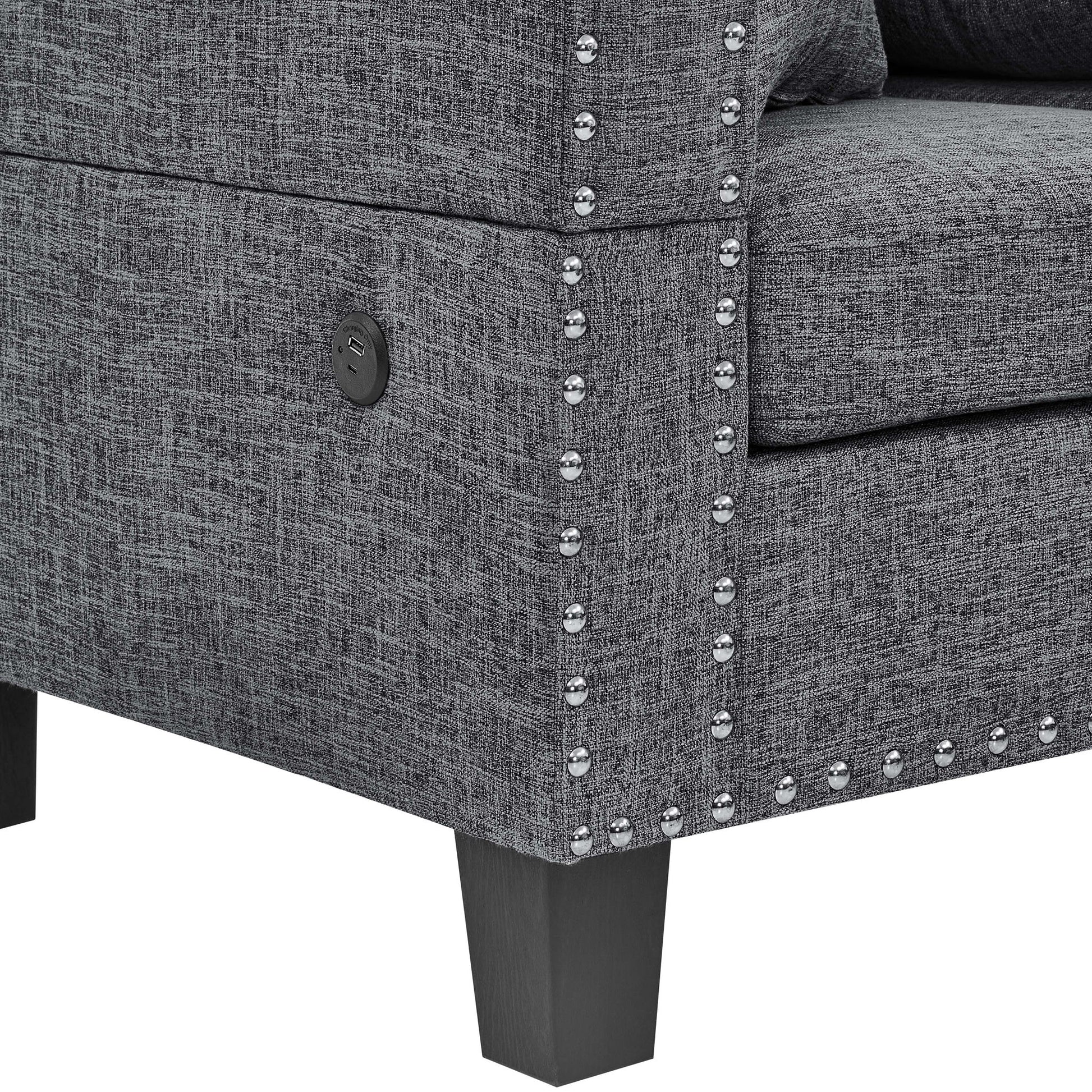 Camden - Power Sectional Sofa With Storage Ottoman And Built In Charging Ports - Gray