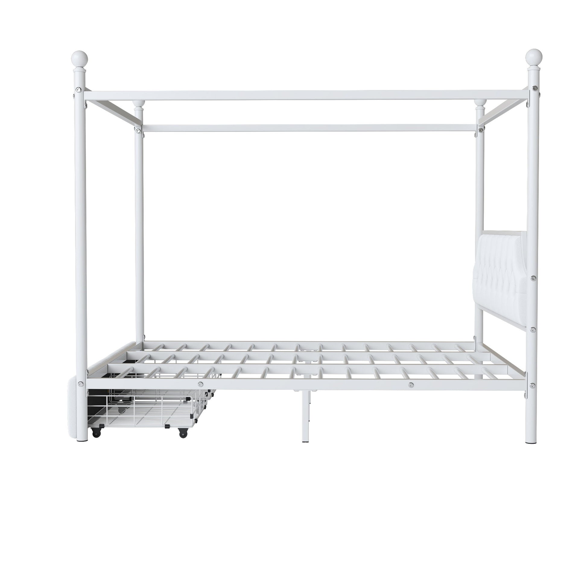 Canopy Platform Bed With Upholstered Headboard And 2 Storage Drawers - White