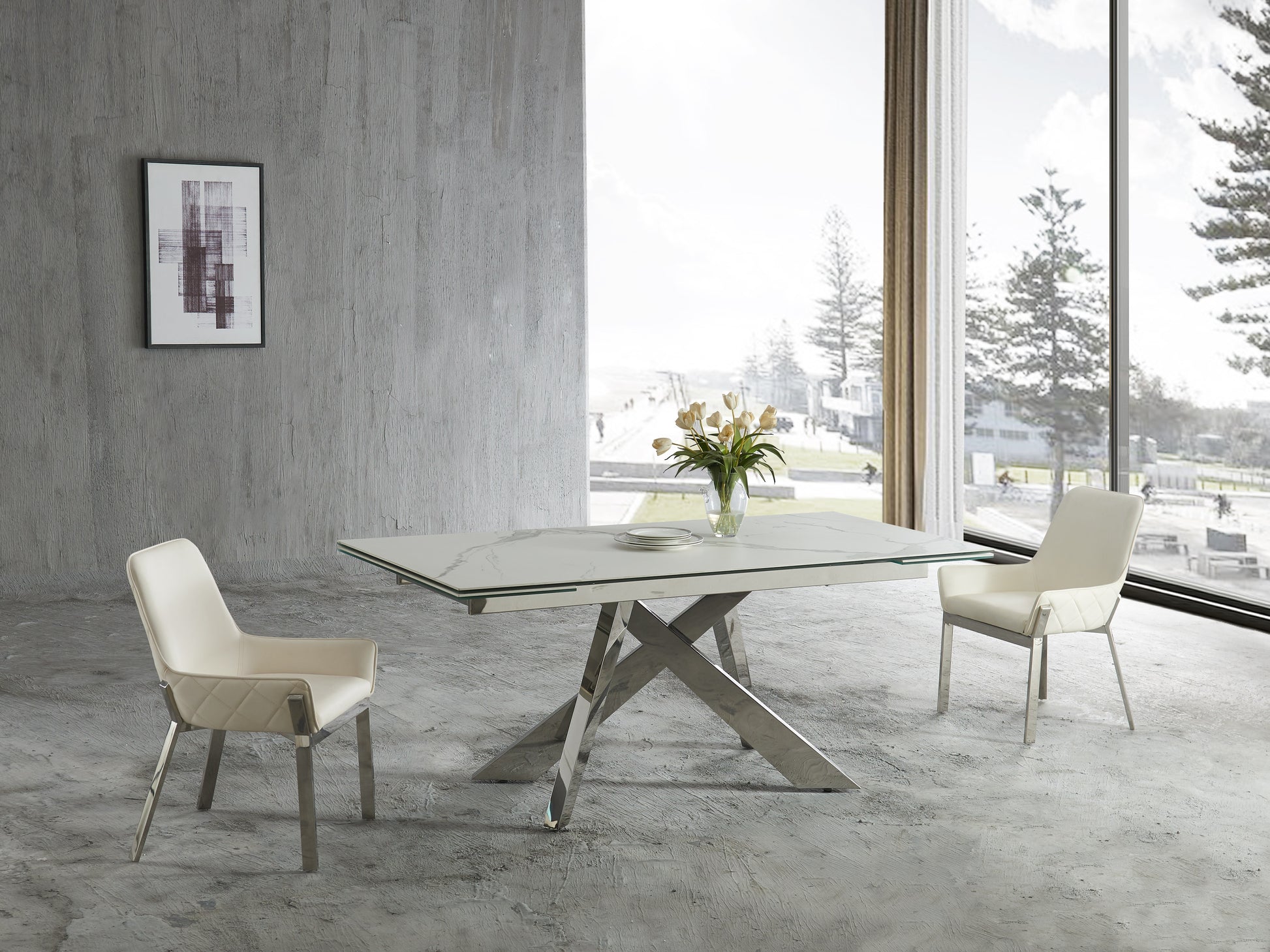 With its seamless blend of luxury and functionality, the Carrara Extension Table is perfect for those who appreciate modern aesthetics and effortless versatility.