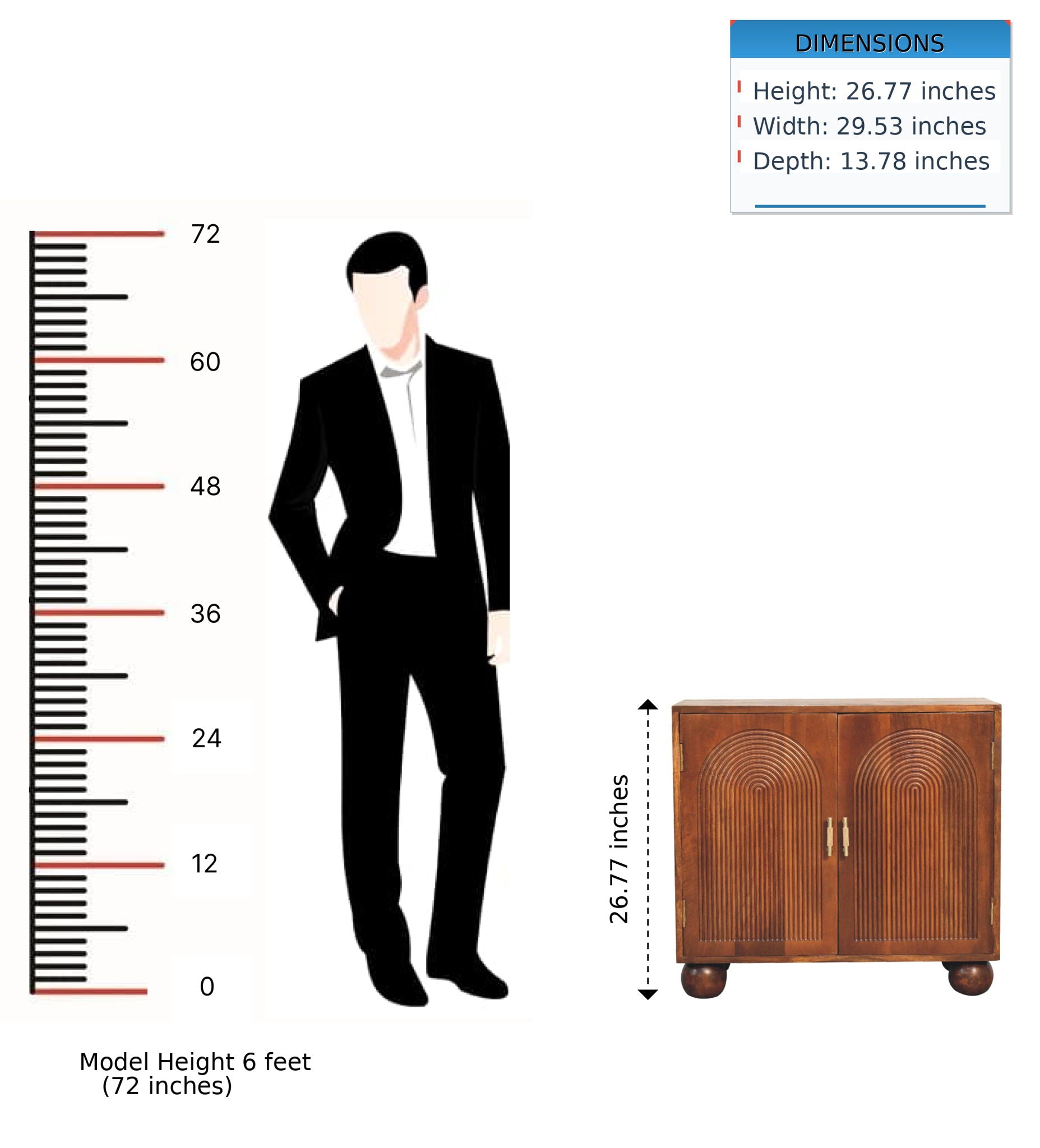 - Features: solid mango wood,chestnut finish,2 doors,carved arch design,chunky ball feet