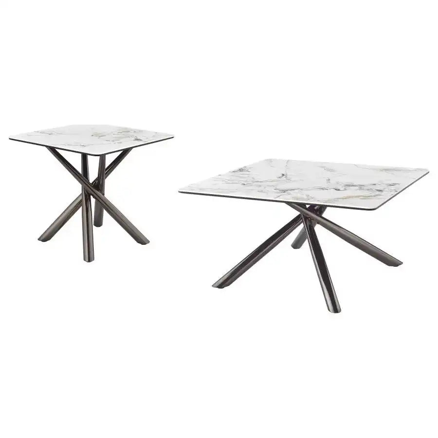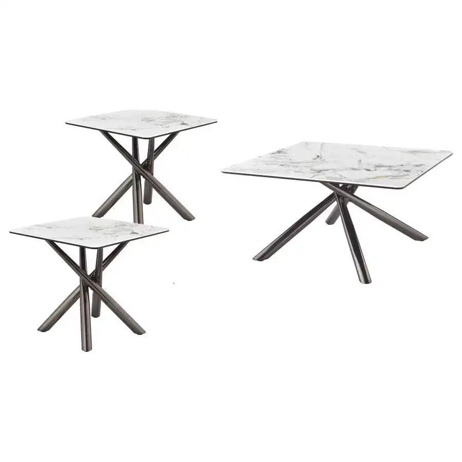 This contemporary coffee table set seamlessly merges modern elegance with durability. Featuring sintered stone top layers over tempered glass, these tables exude refined luxury while ensuring lasting resilience. Their steel asterisk bases, finished in a sleek nickel electroplating, provide sturdy support and a striking visual contrast. Whether used as a coffee table, cocktail table, or accent table, this sophisticated set elevates any living space with its sleek design and versatile functionality.