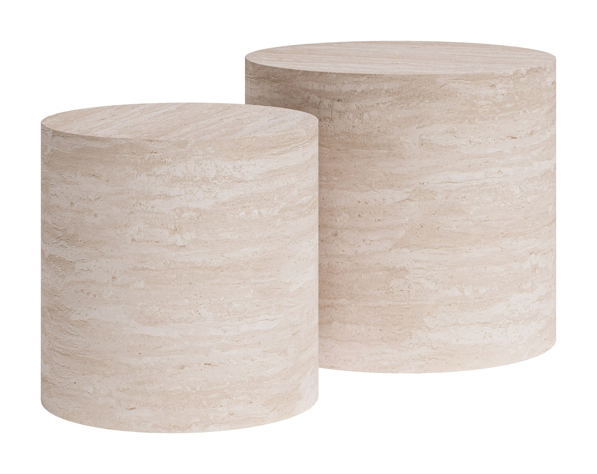 The Carzo Coffee Table Set in Stone Beige blends deco-inspired design with an industrial edge and everyday functionality. Made from faux travertine MDF and plywood, it delivers sturdy construction and a clean, refined look. A transparent glass layer enhances durability while preserving the table’s elegant stone-like appearance. With balanced proportions and classic deco style, this set fits effortlessly into a range of interiors. Designed for lasting performance, it’s ideal for both residential and hospitality settings.