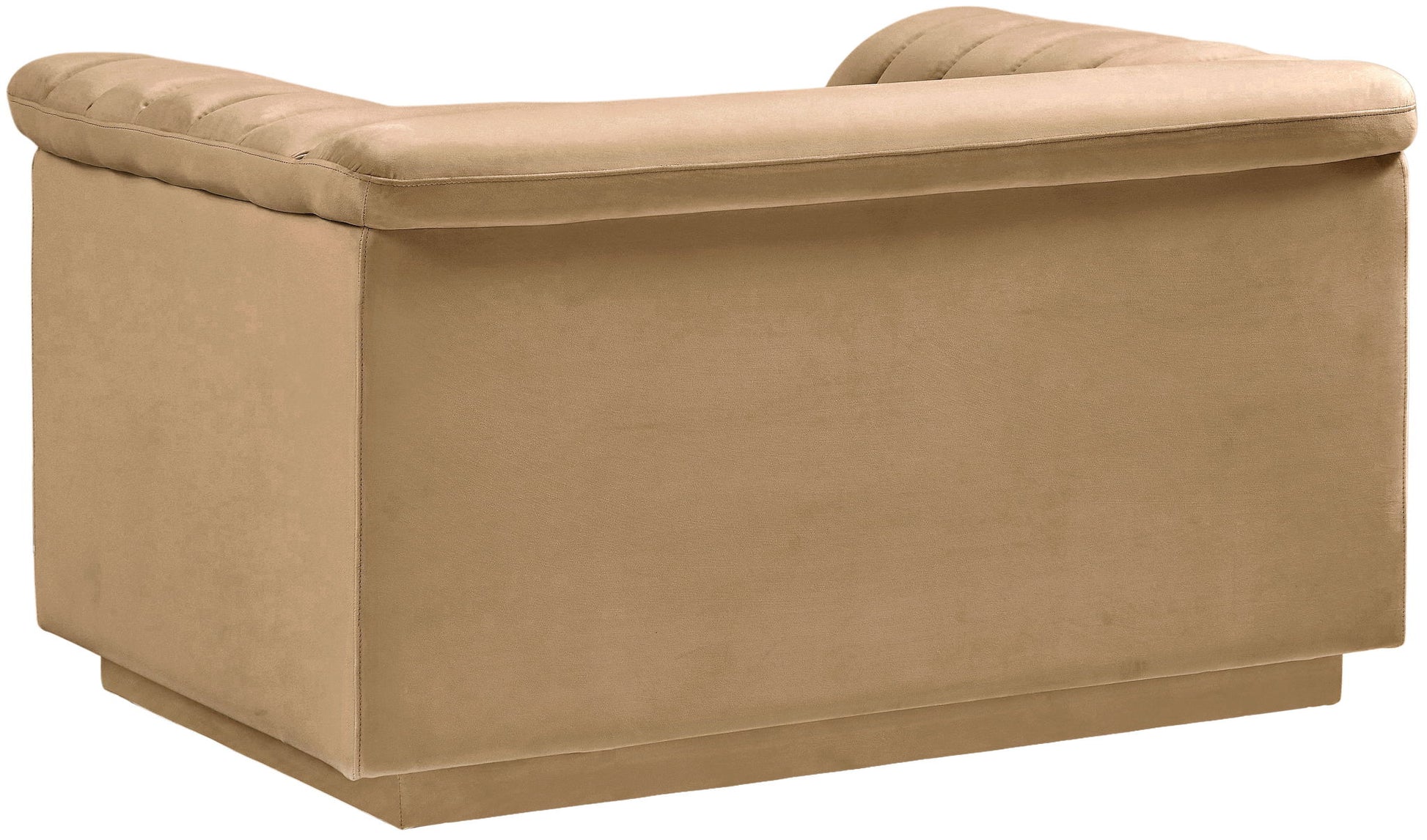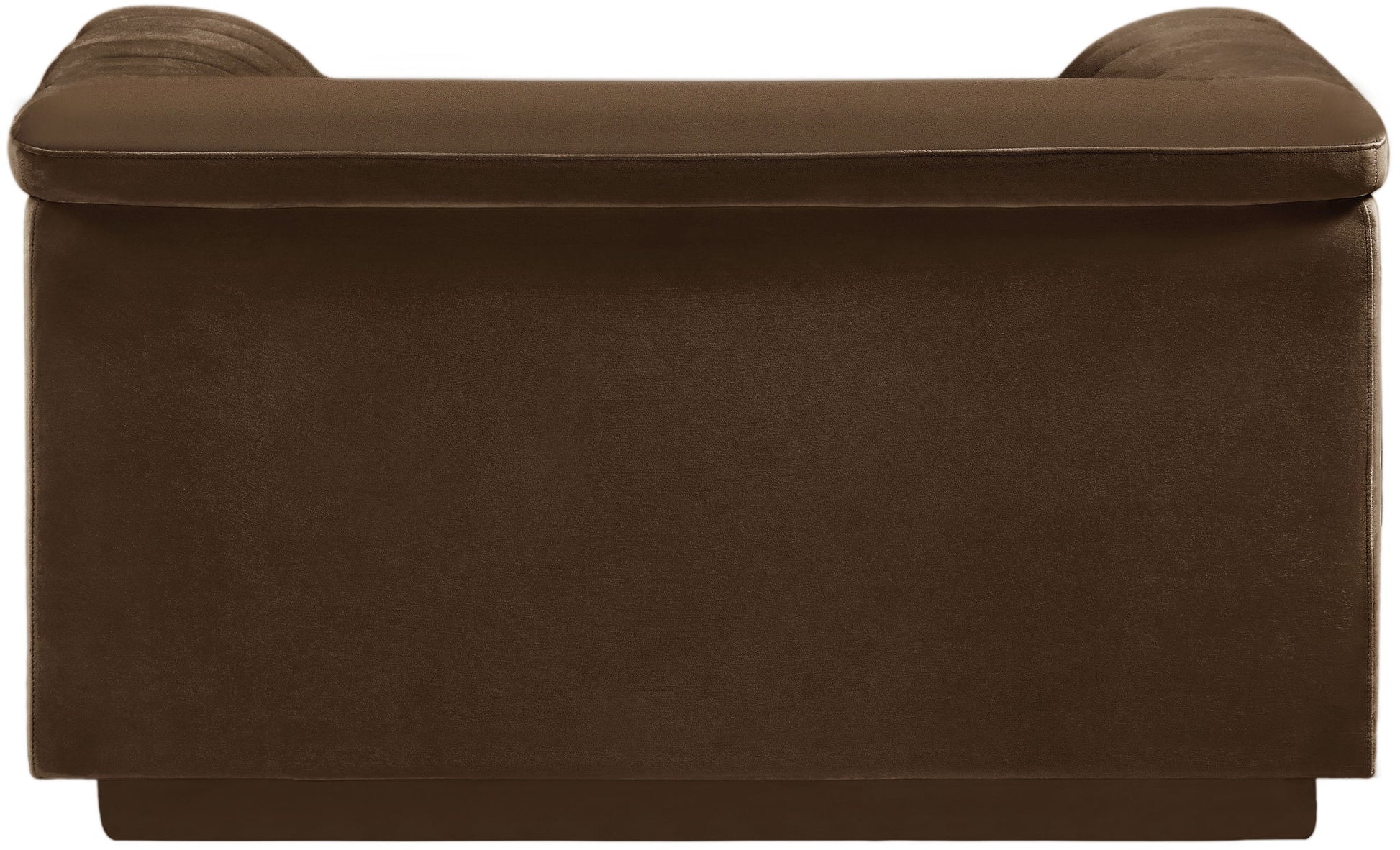 Add instant modern pizzazz to your living room or den with this Cascade velvet fabric chair. Upholstered from top to bottom in soft velvet upholstery, this chic chair adds contemporary flair to any space you choose to use it in. Curved arms and a sleek profile make this chair beautiful to behold while deep channel tufting adds to its long-term durability and adds a textural feel. Thickly padded arms, back and seat make this chair perfect for curling up in while watching TV or reading the latest bestseller.