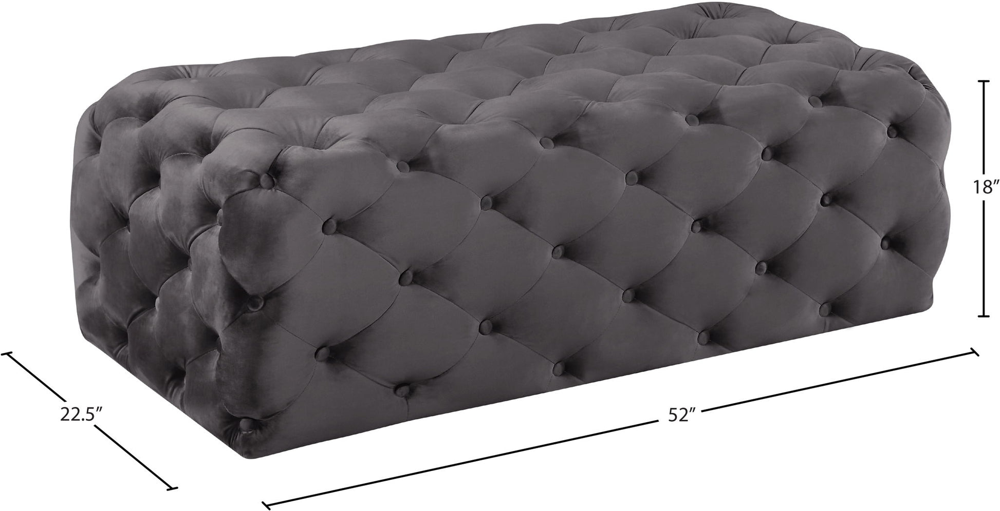 Prop your feet up and get comfy with the Casey velvet ottoman. This elegant ottoman features a glamorous design with deep tufting from top to bottom, giving it a sophisticated, upscale look. The padding beneath its velvet upholstery is plump and thick, so your feet and lower legs sink into it in lavish comfort. Buy it on its own, or pair it with other items in the collection for a coordinated vibe in your space.