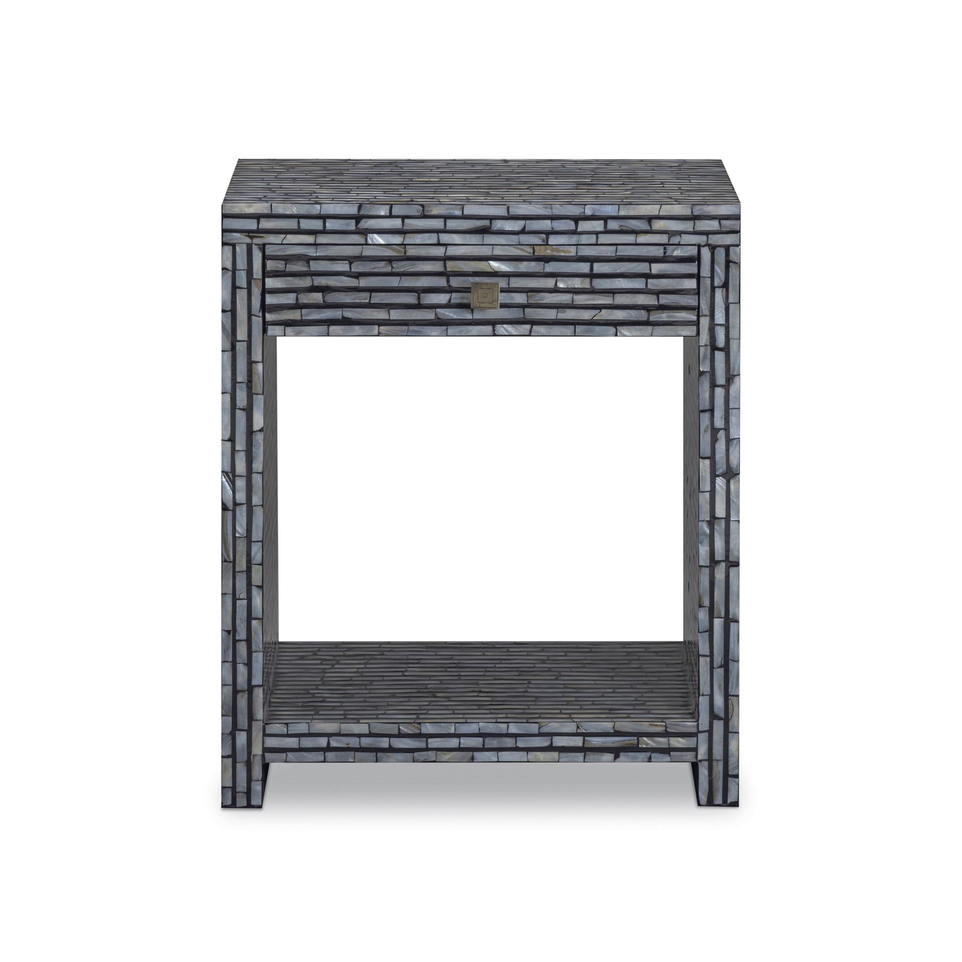 Add a touch of charm to your bedroom with the Cassis Nightstand. Hand-placed mother-of-pearl shells create luminous motifs that shimmer against a black finish, making this artful piece both beautiful and functional beside your bed.