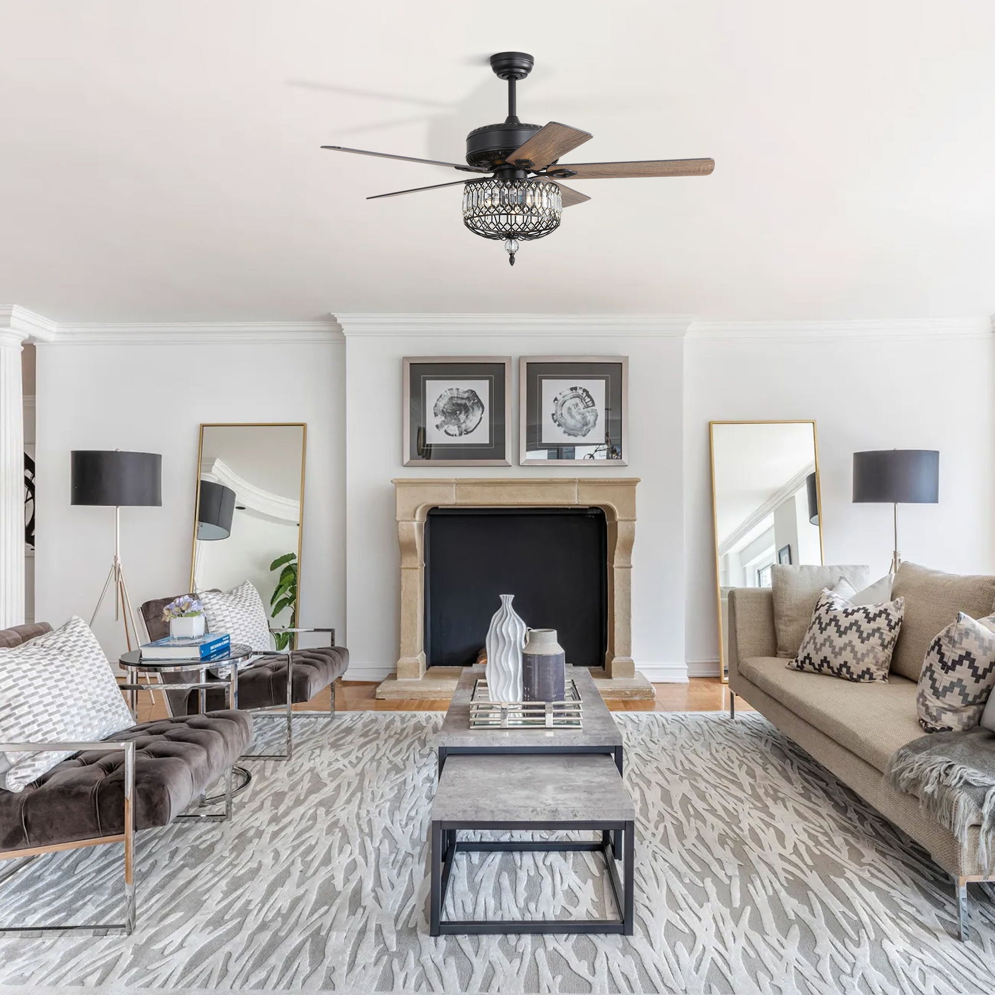 - Elegant Aesthetic Appeal: Combines black metal frame with crystal accents and wooden blades for a refined look suitable for modern and classic spaces.