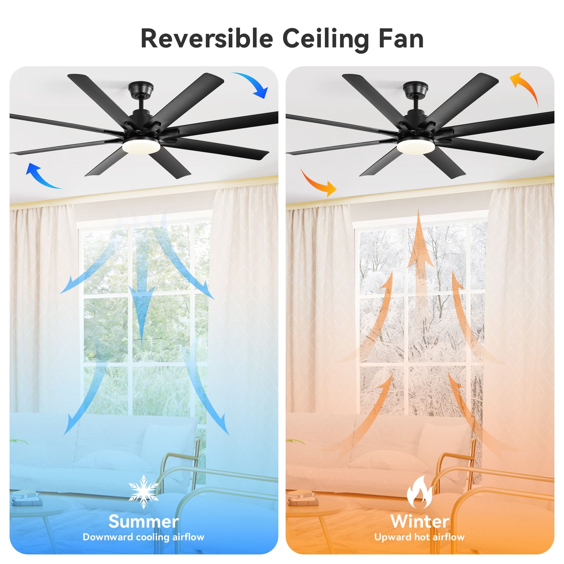 - Reversible DC Motor:The reversible function allows you to change the blade direction seasonallydownward for a cooling breeze in summer and upward to circulate warm air in winter.