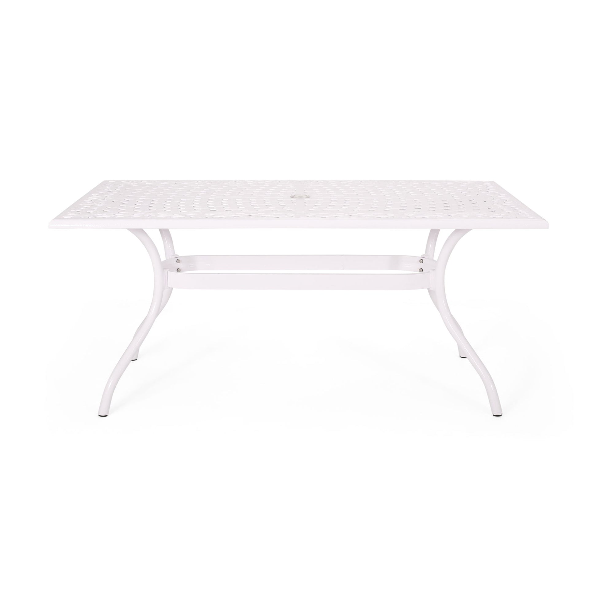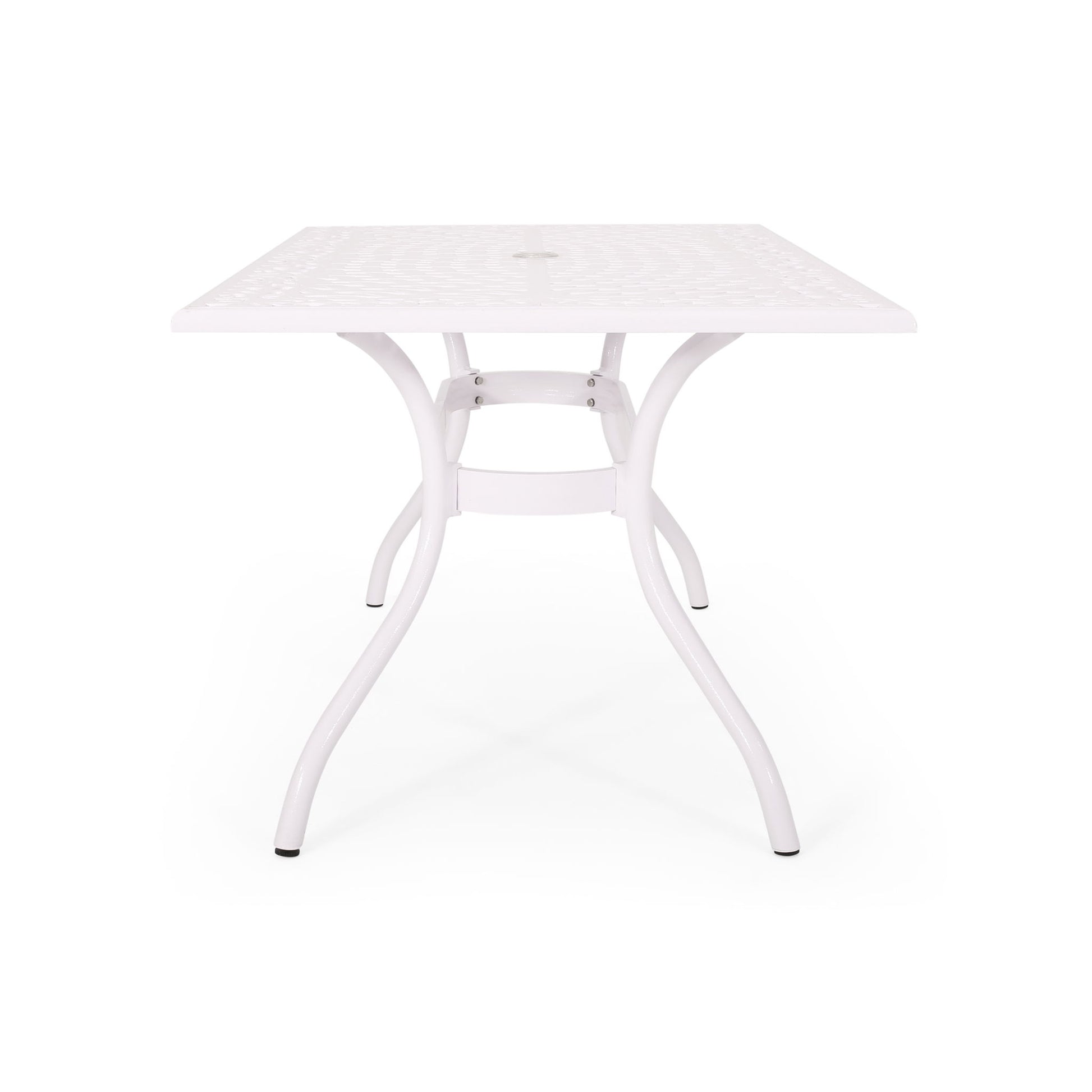 Celestine - Outdoor Cast Aluminum Dining Table With Floral Lattice Design And Umbrella Holder - White
