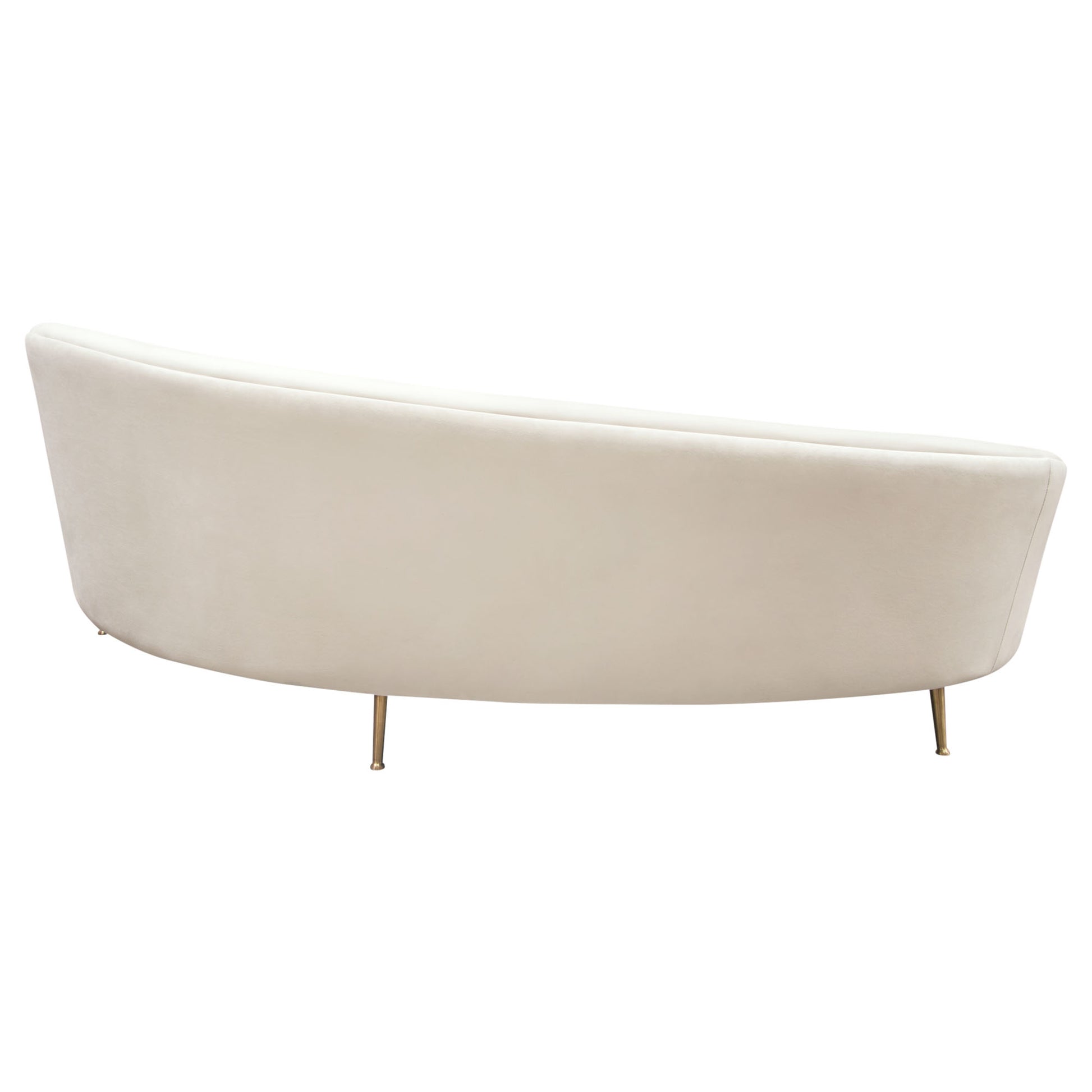 Celine Curved Sofa with Contoured Back in Light Cream Velvet and Gold Metal Legs by Diamond Sofa