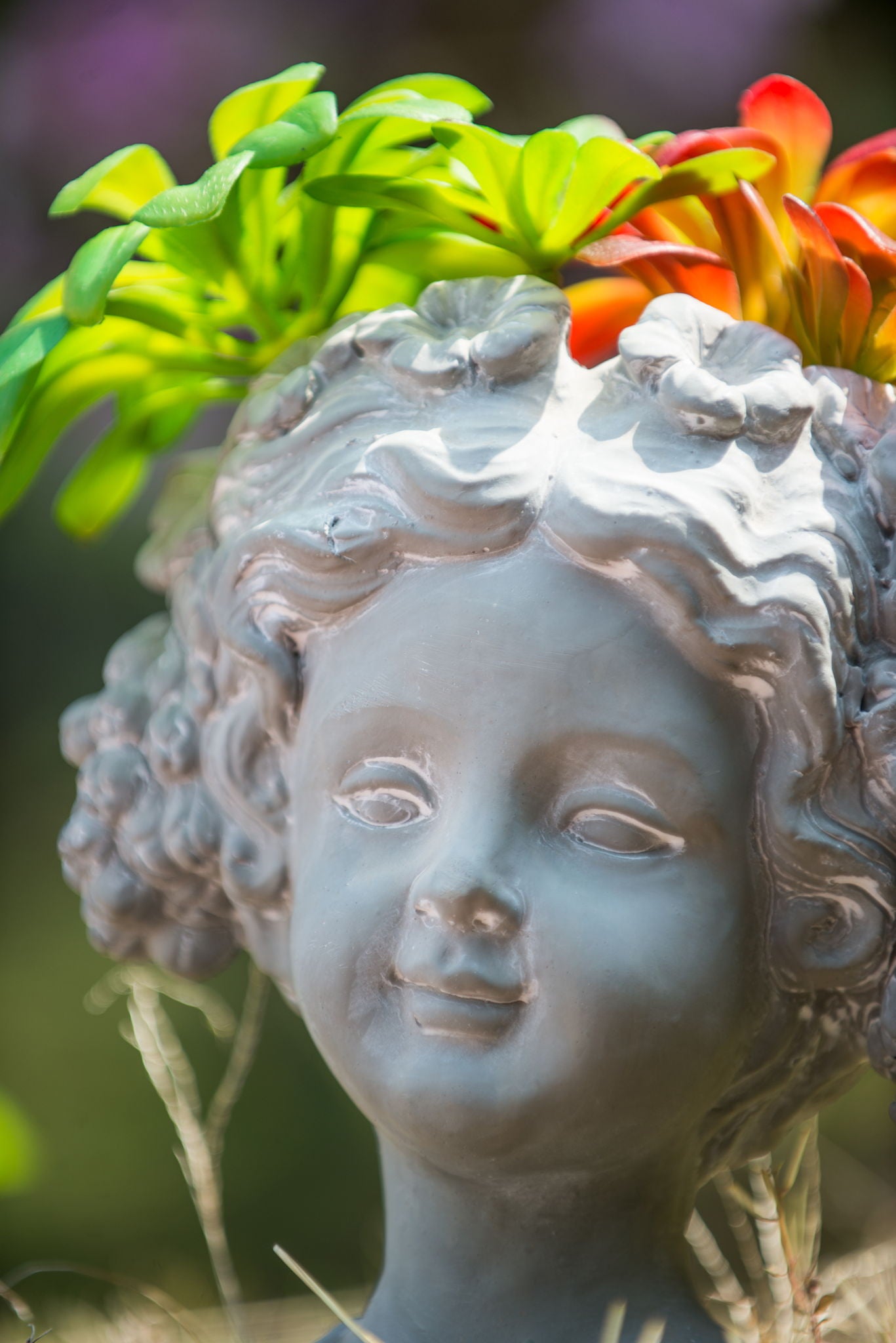 Cement Bust Wall Planter Indoor Outdoor Home Garden Decor - Gray