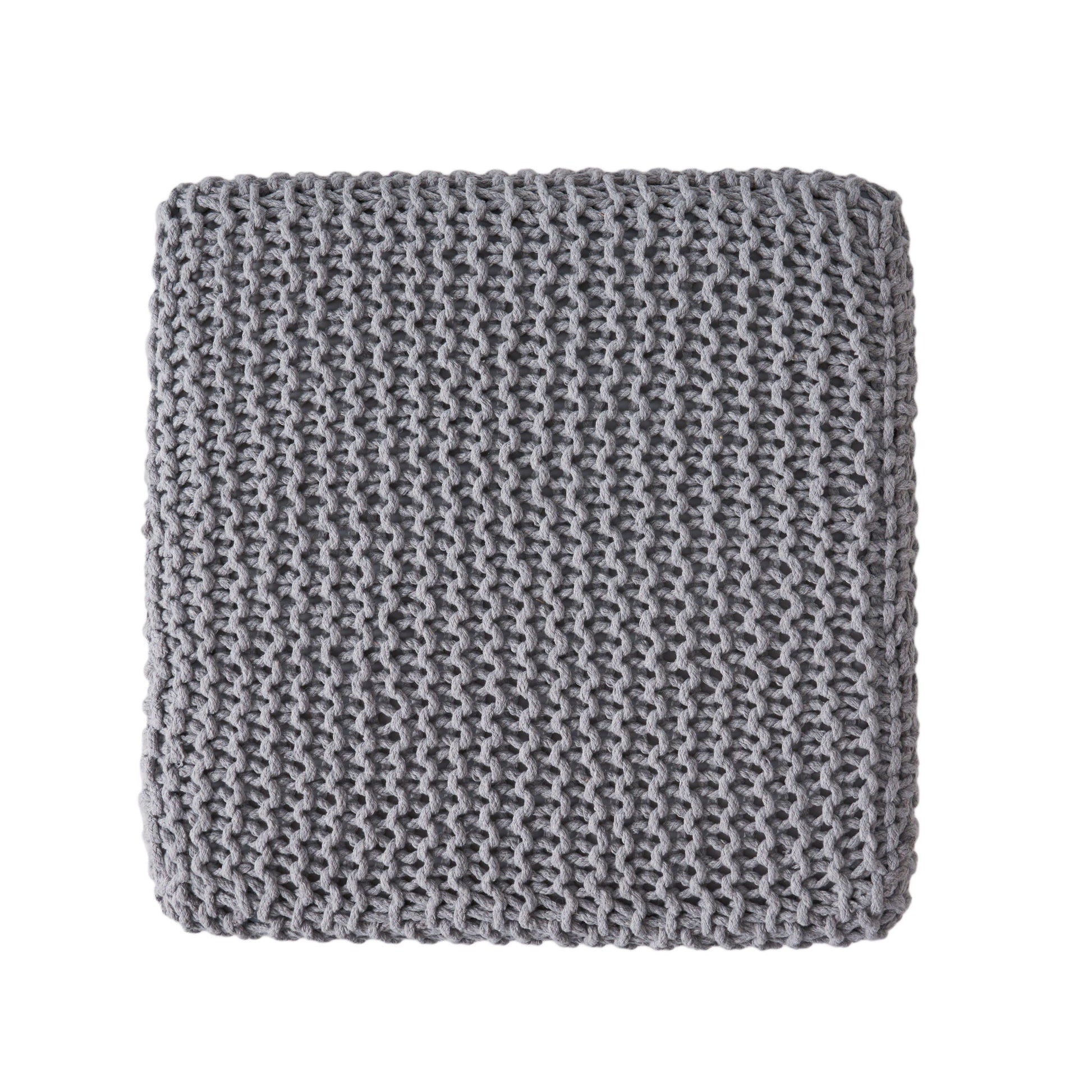 Chabani - Indoor Modern Knitted Fabric Cube Pouf Ottoman - Light Gray