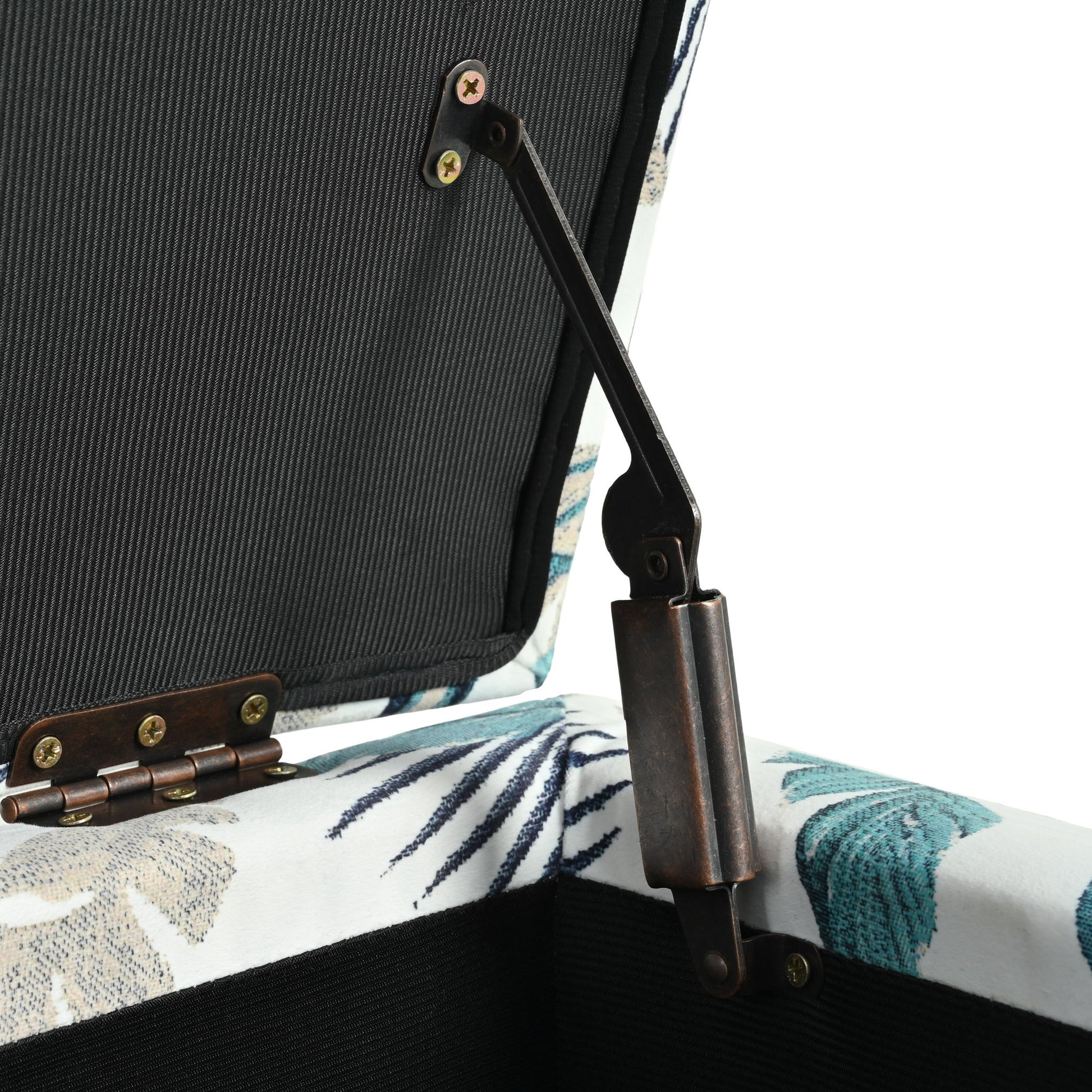 Elegant Flower Pattern Storage Ottoman With Soft Upholstery And Wood Frame - Flower