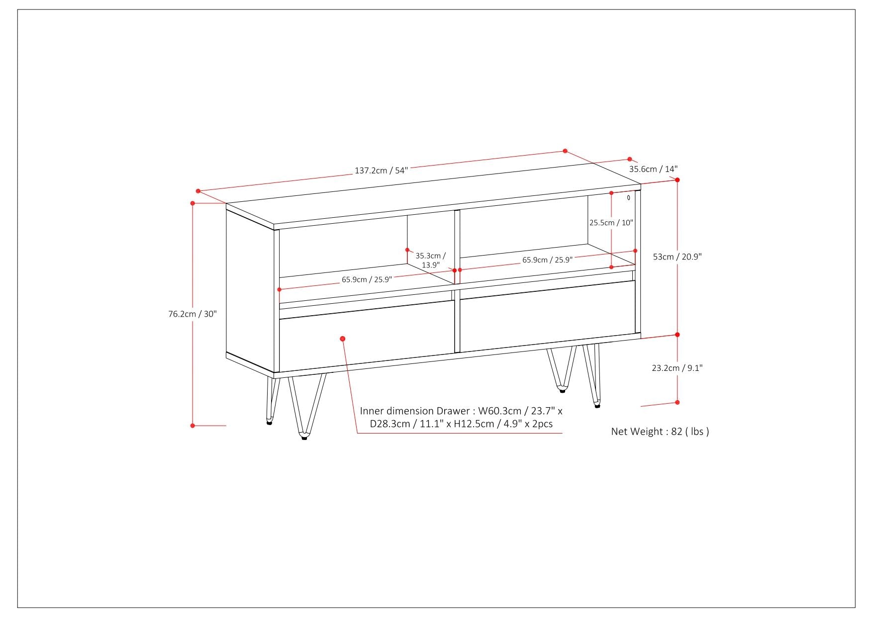 53.9"W x 14.0"D x 30.0"H - 63.9 lb