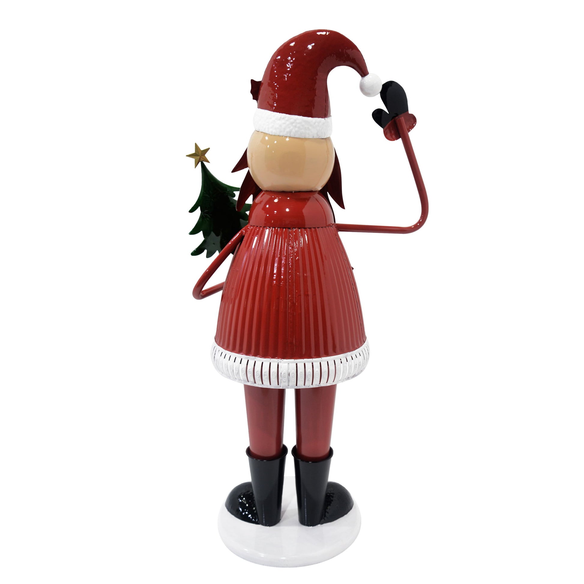 Cheerful Santa Claus Holding Tree And Waving, Holiday Decoration With Festive Design - Red