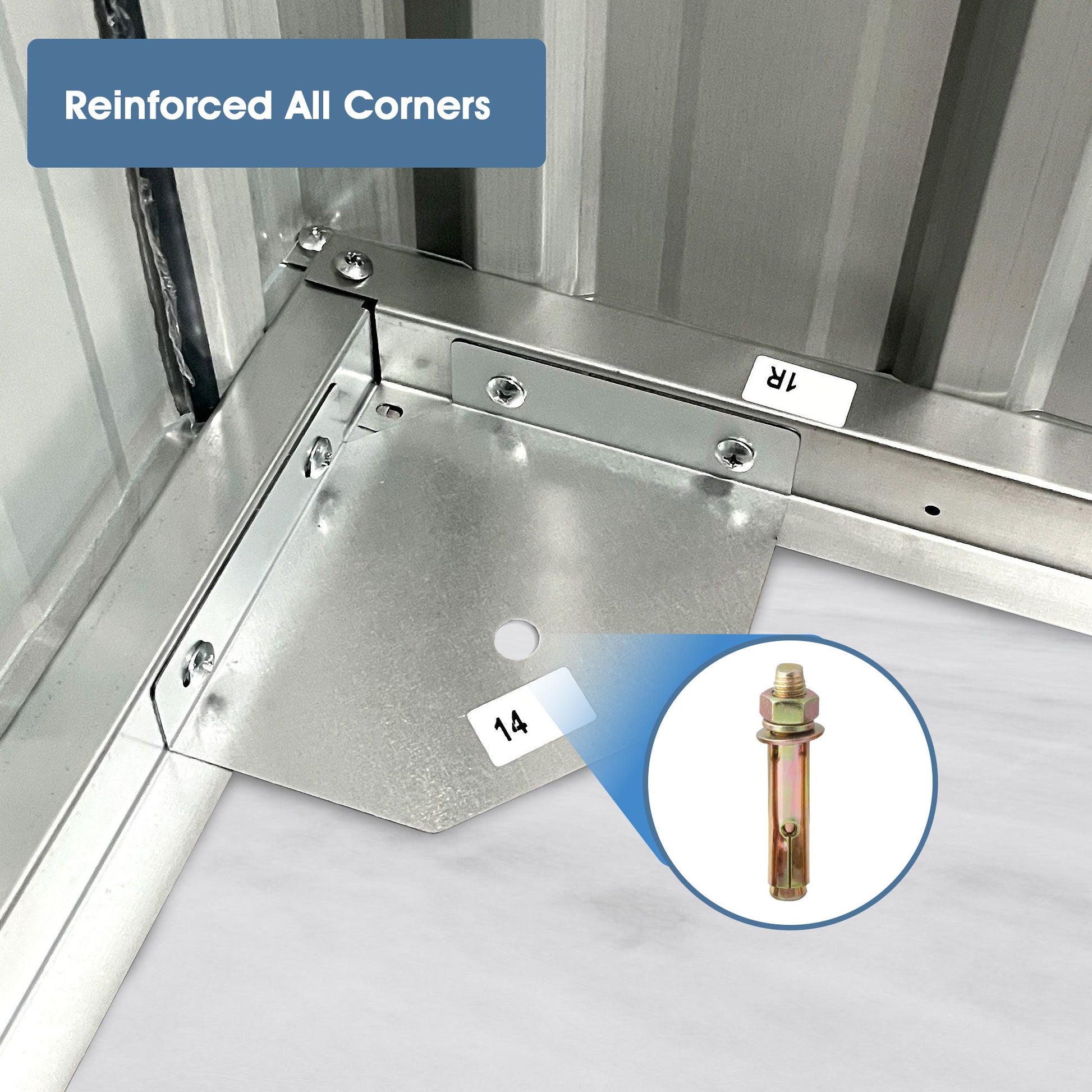 - Durable Construction: Made from Anti UV Galvanized Steel, this shed includes a 0.3mm thick roof, 0.25mm walls, and 1mm steel tubes with powder coating for enhanced durability.