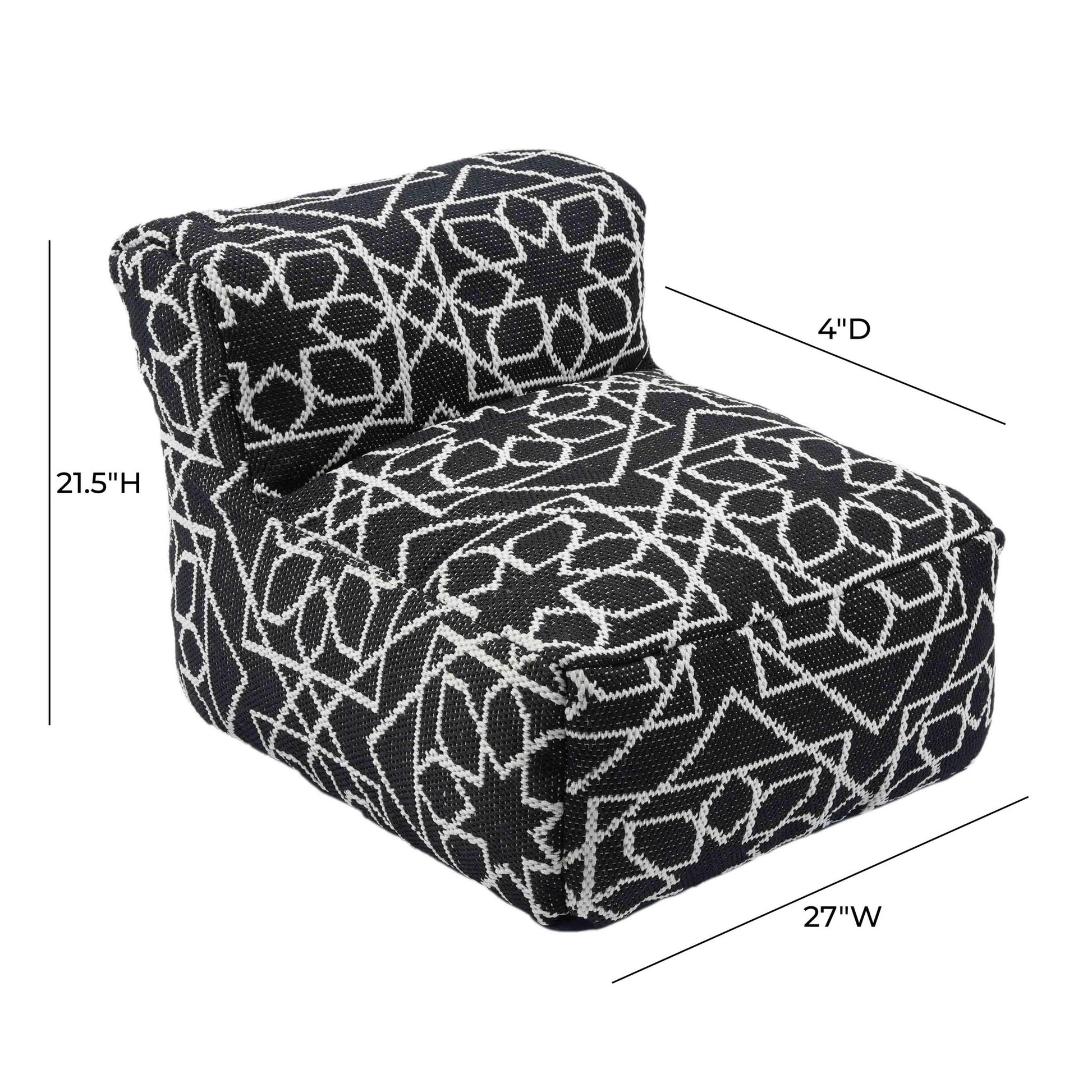 The Chiara Indoor/Outdoor Black Accent Pouf is a chic and versatile addition to your space, perfect for both indoor lounging and outdoor gatherings. Crafted with a textured weave featuring boho patterns and rich coloring, it effortlessly elevates any decor style. Plus, it's outdoor safe, allowing you to enjoy its charm and comfort in the sun or shade without worry!
