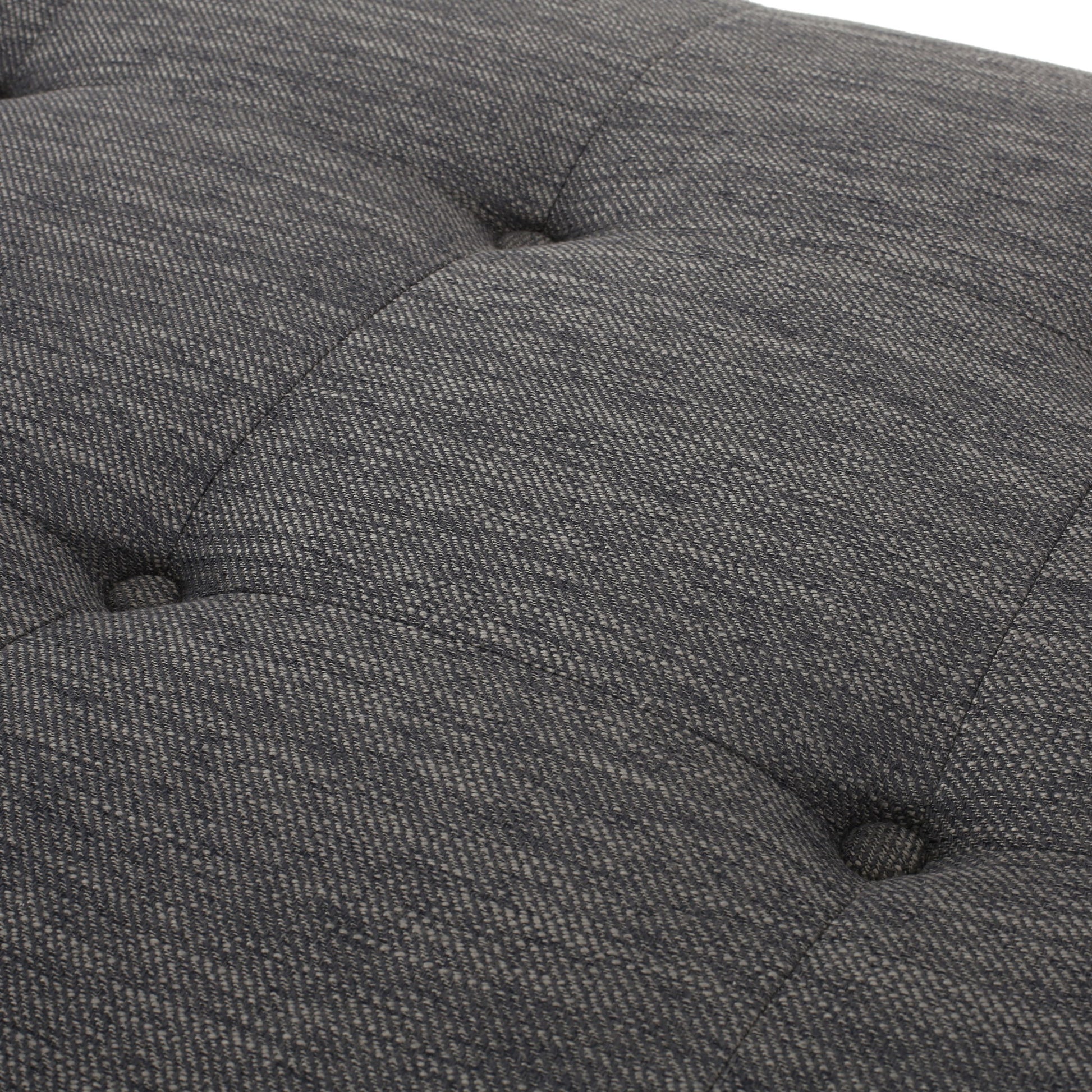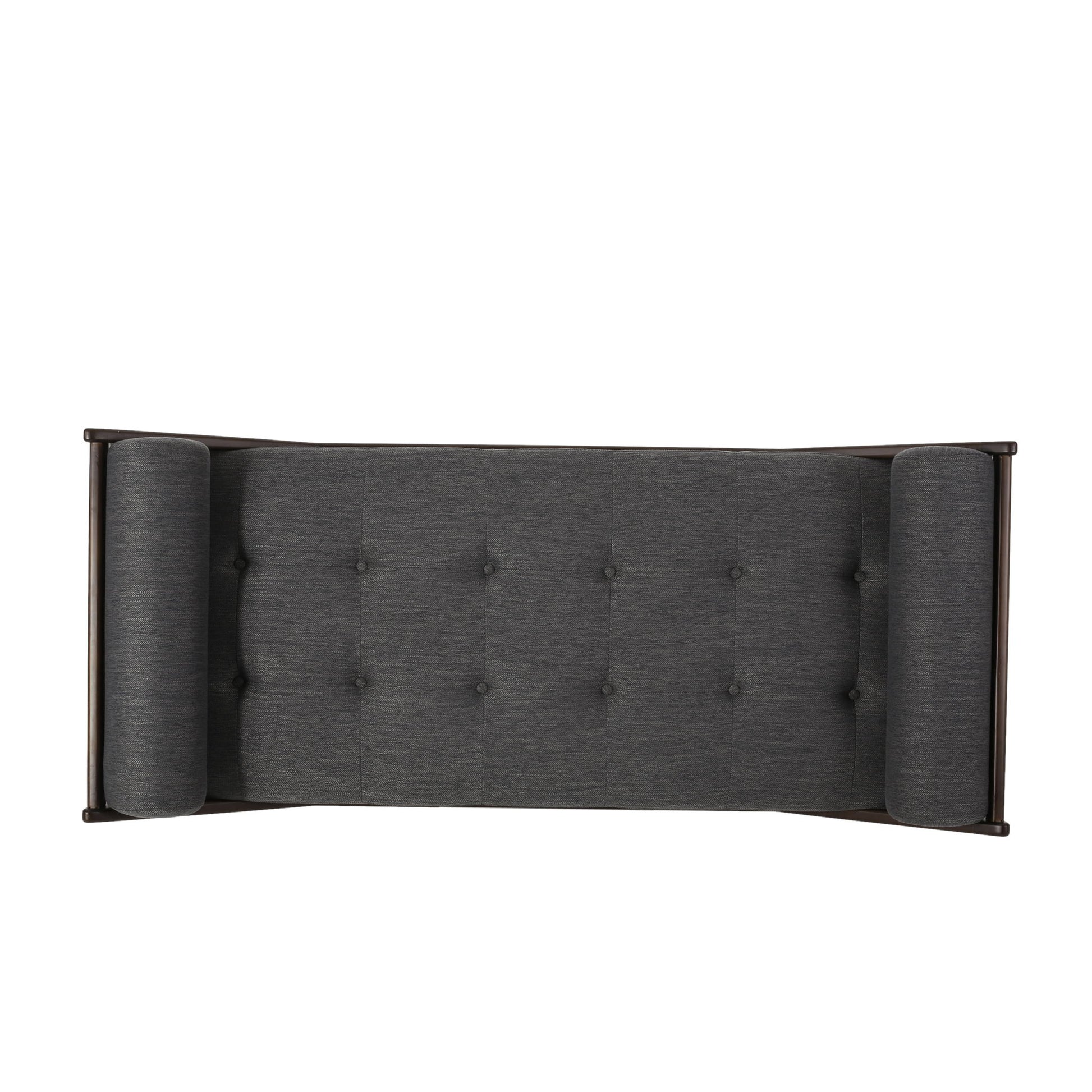 Contemporary Fabric Chaise Lounge With Button Tufted Waffle Stitching And Rolled Accent Pillows - Charcoal