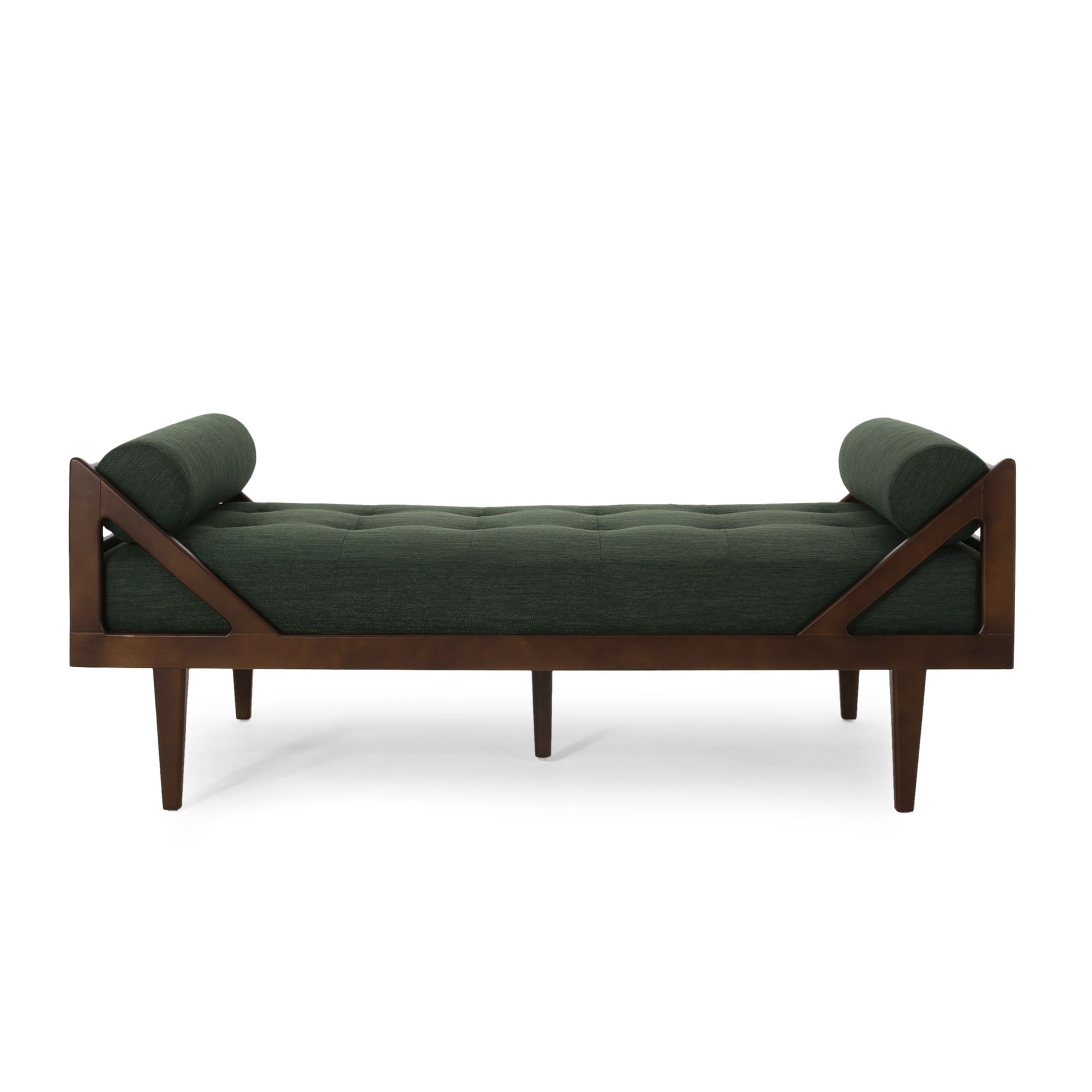 Chic Modern Chaise Lounge With Button Tufting And Bentwood Design - Blackish Green