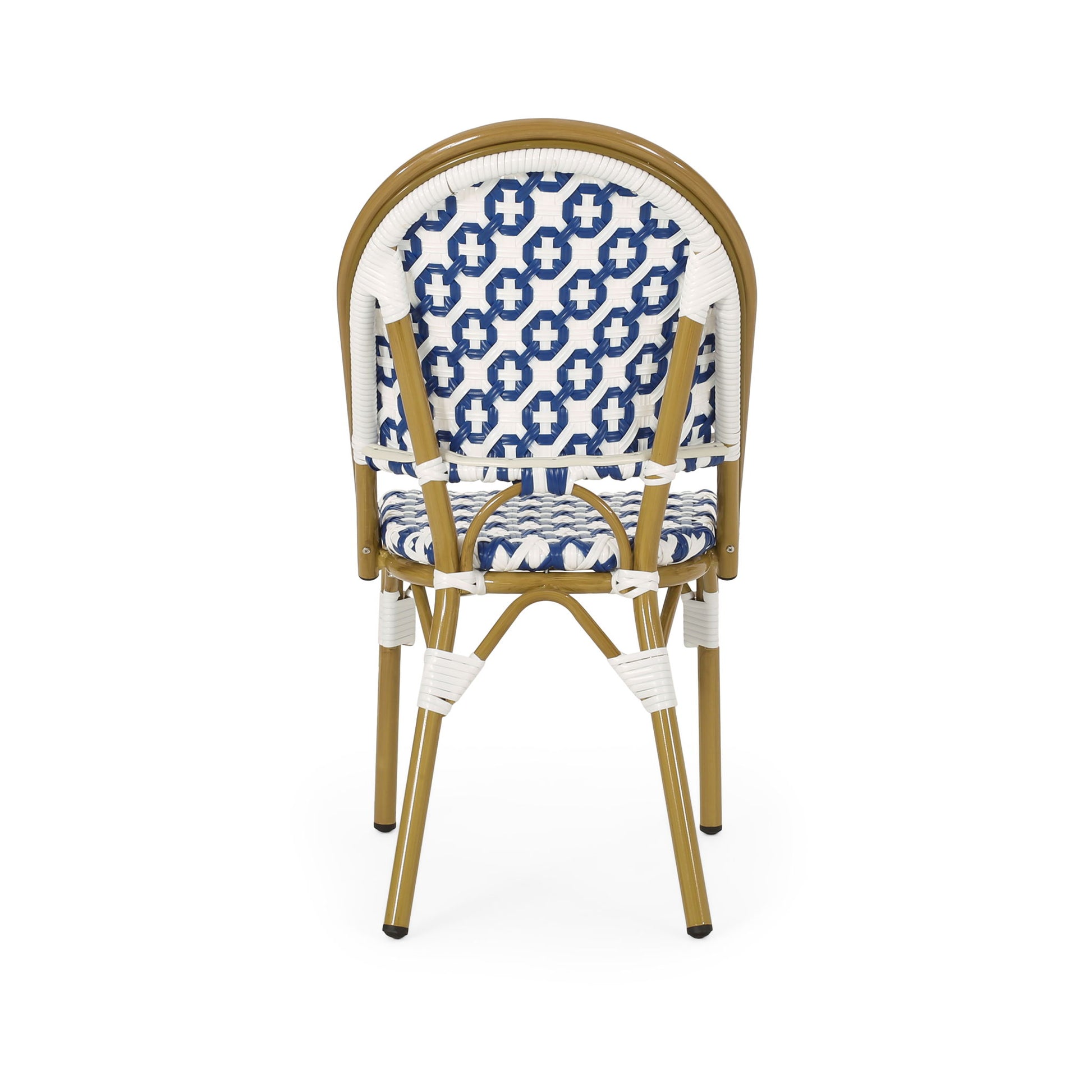 Elegant French Bistro Chair Set With Durable Aluminum Frame And Polyethylene Rattan - White / Navy