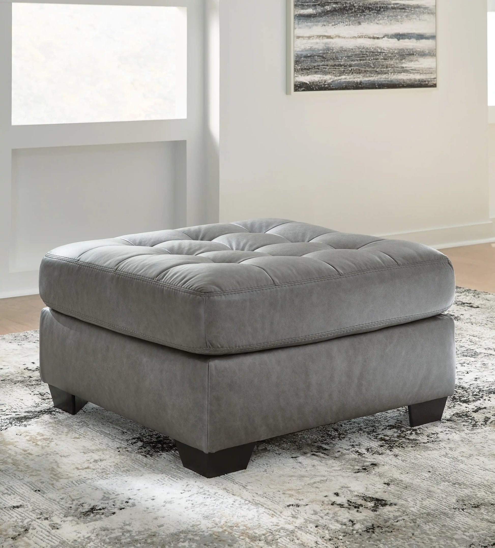 You want your living room to reflect your ultra-cool character. Introducing: this oversized accent ottoman. Its faux leather is a sleek and stylish approach to contemporary aesthetics. For a finishing touch, button tufting adds extra flair.
