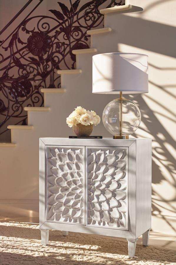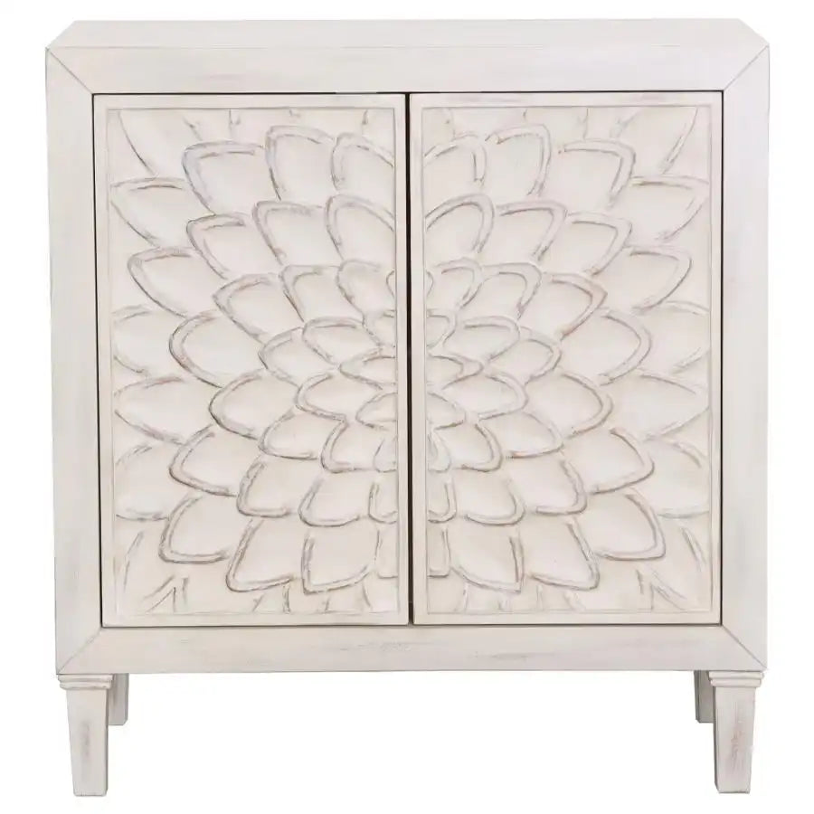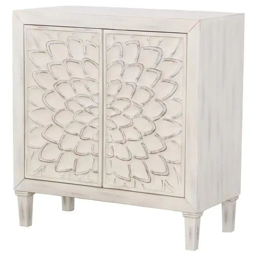 Clarkia - Accent Cabinet With Floral Carved Door - White
