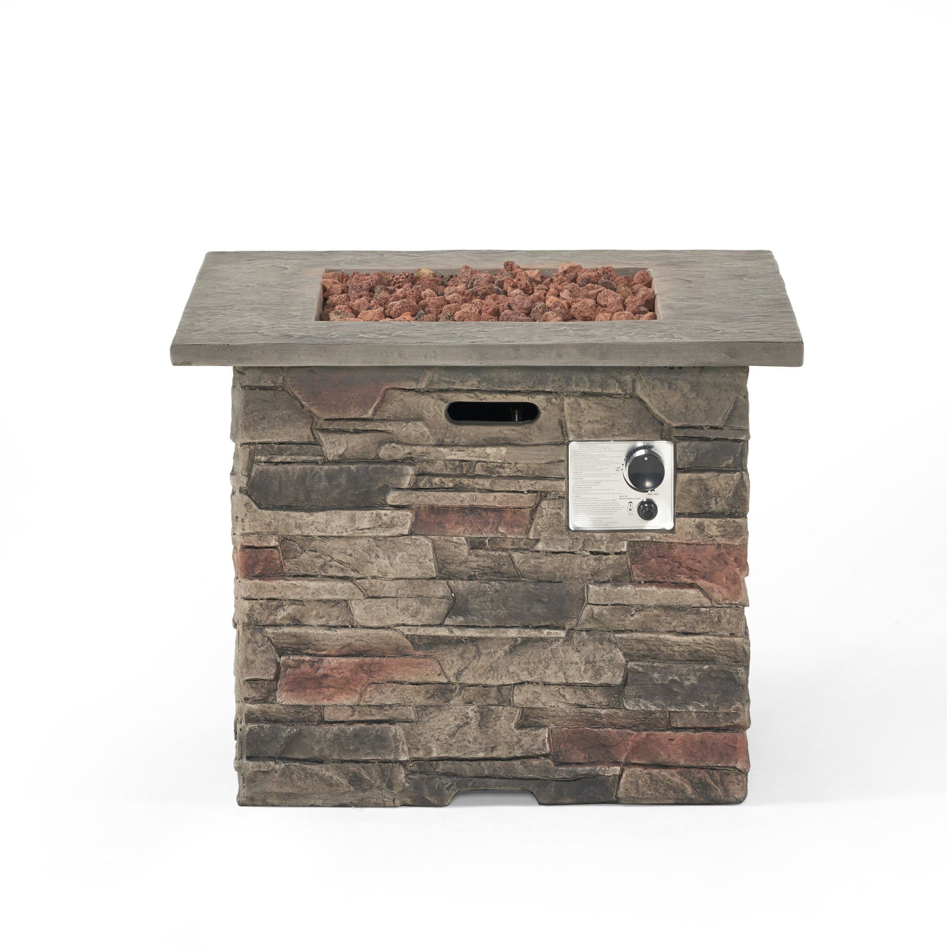 Classic Design Square Fire Pit With Top And 40, 000 Btu Heat Output - Stone Gray