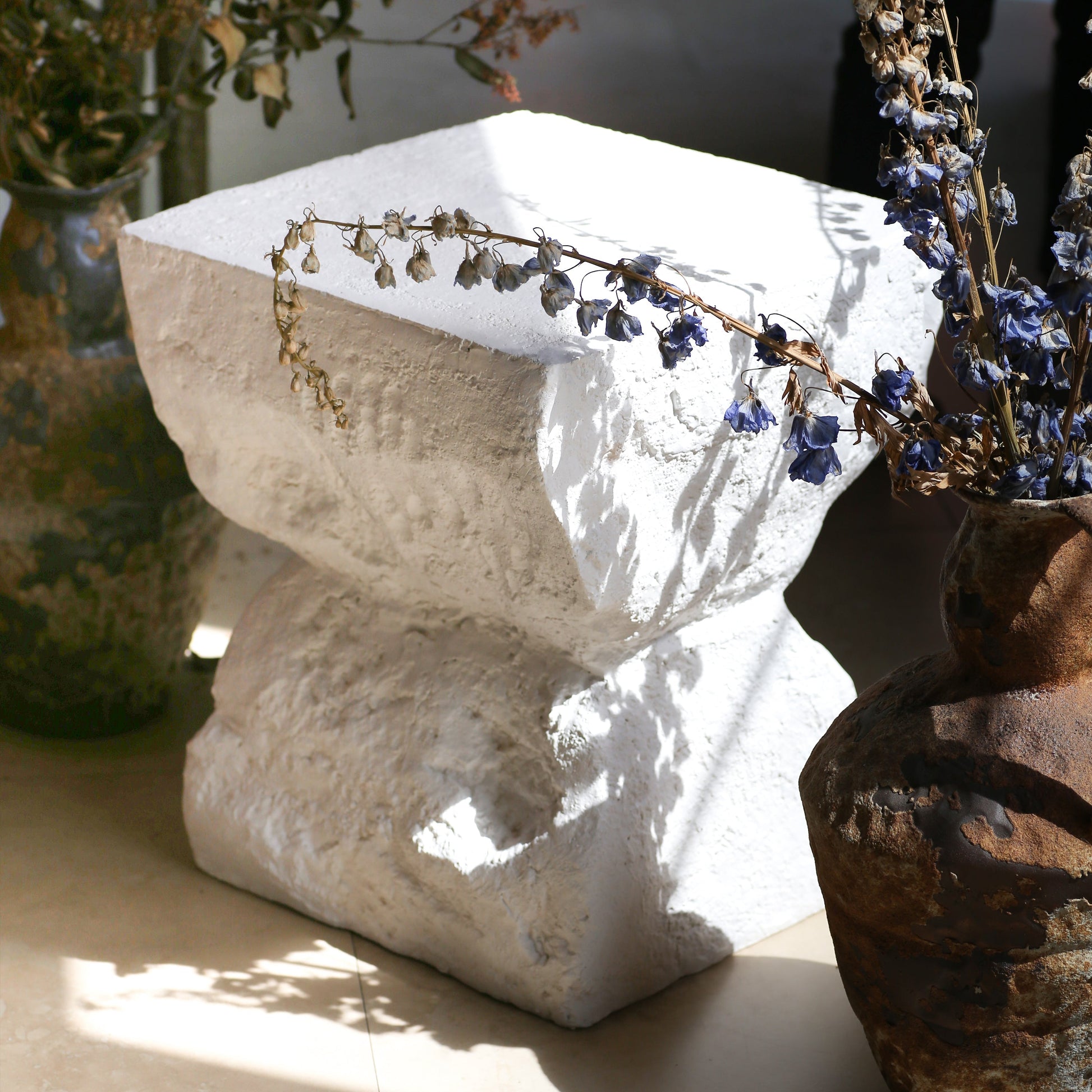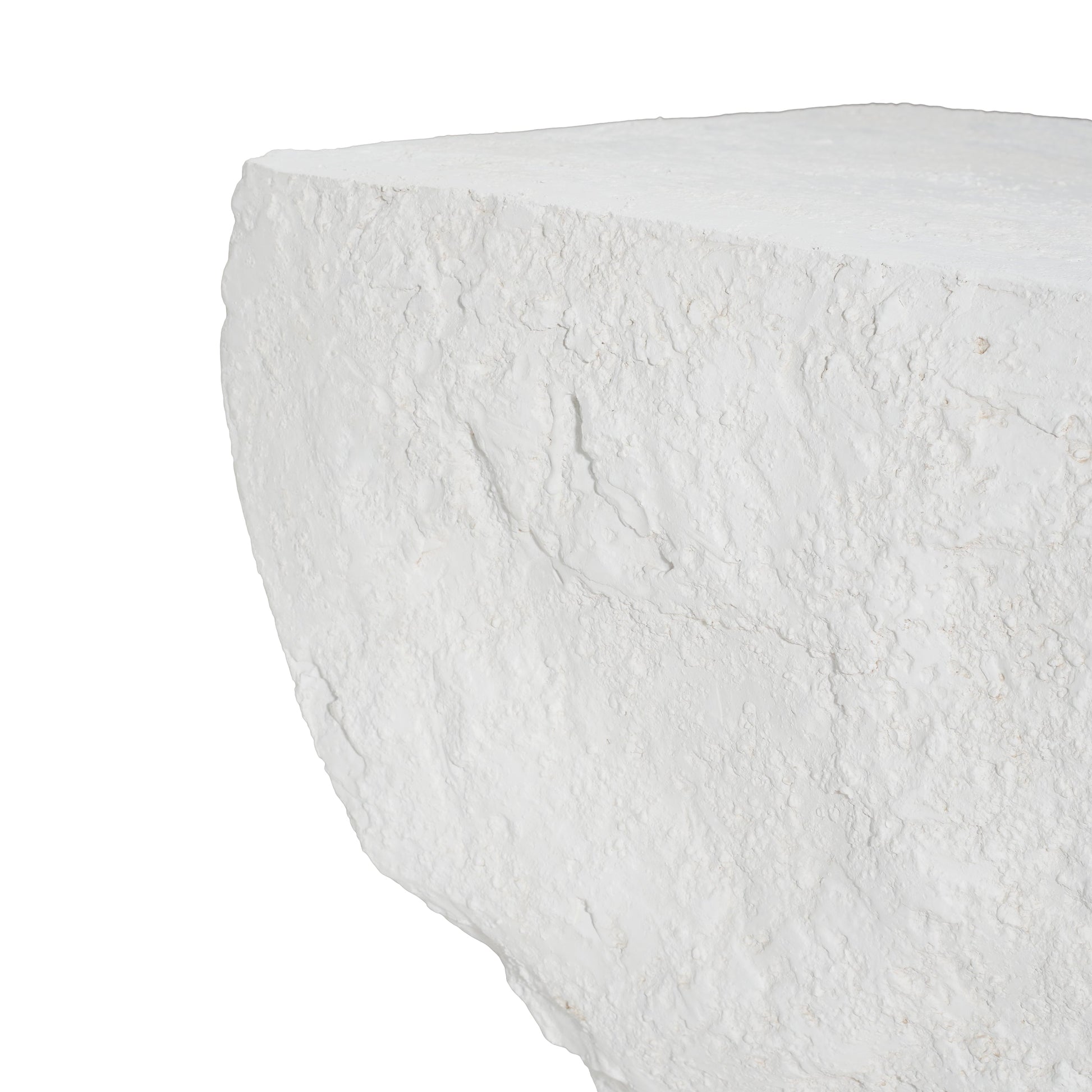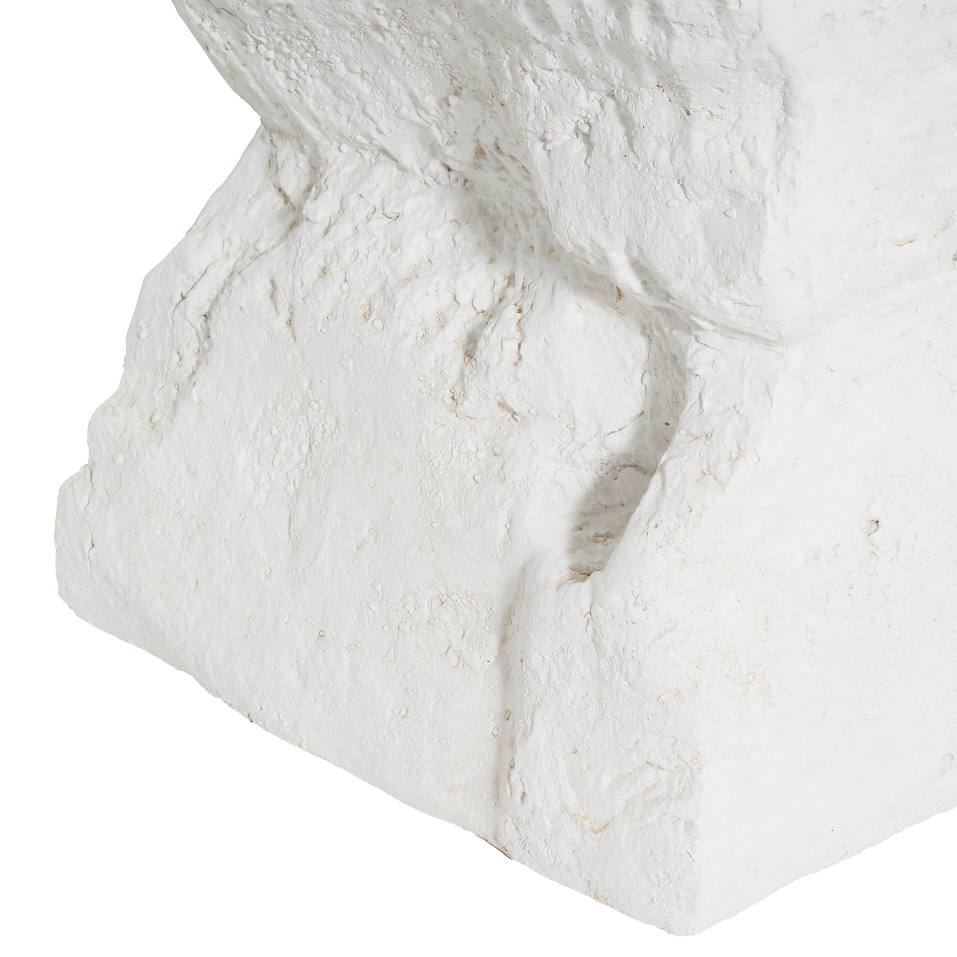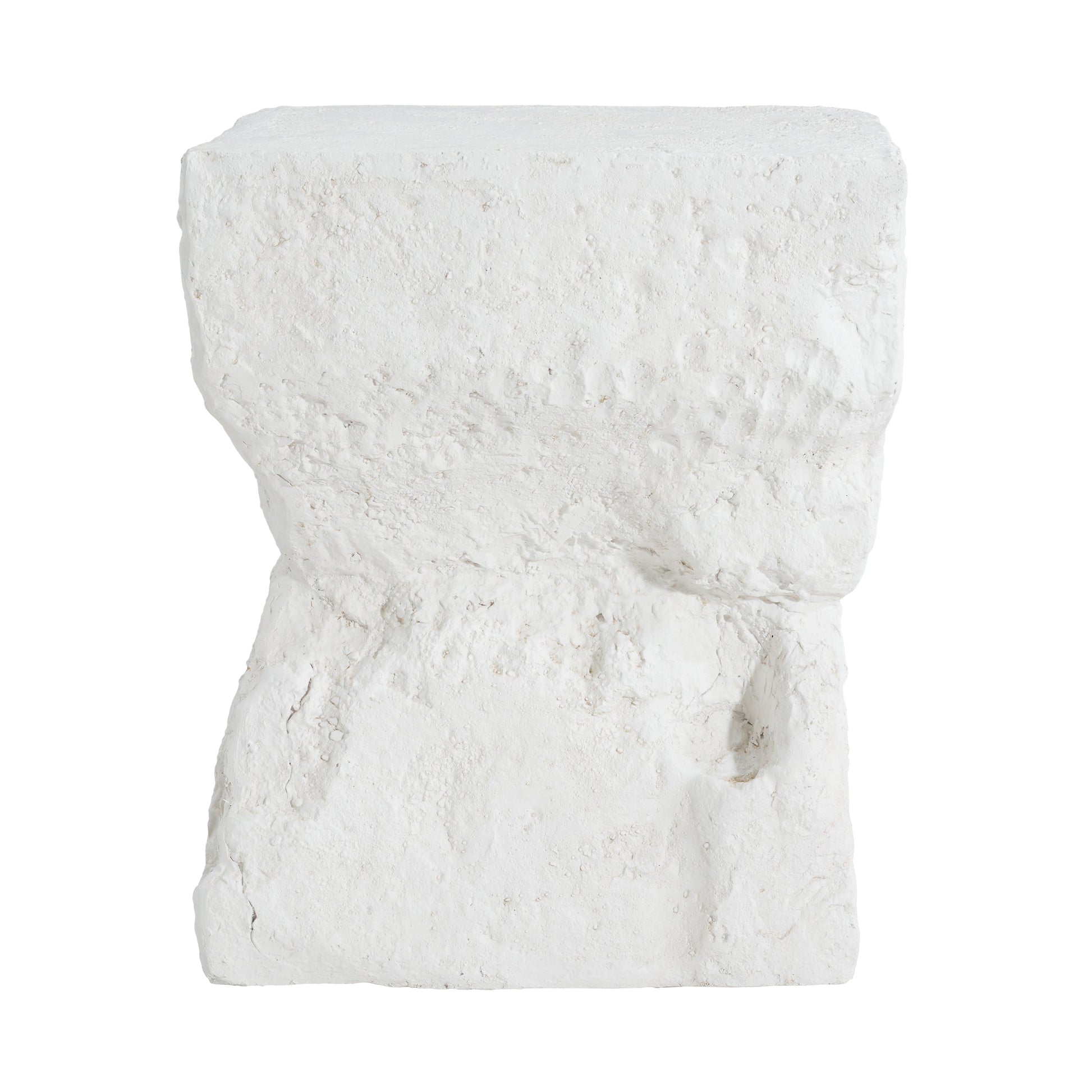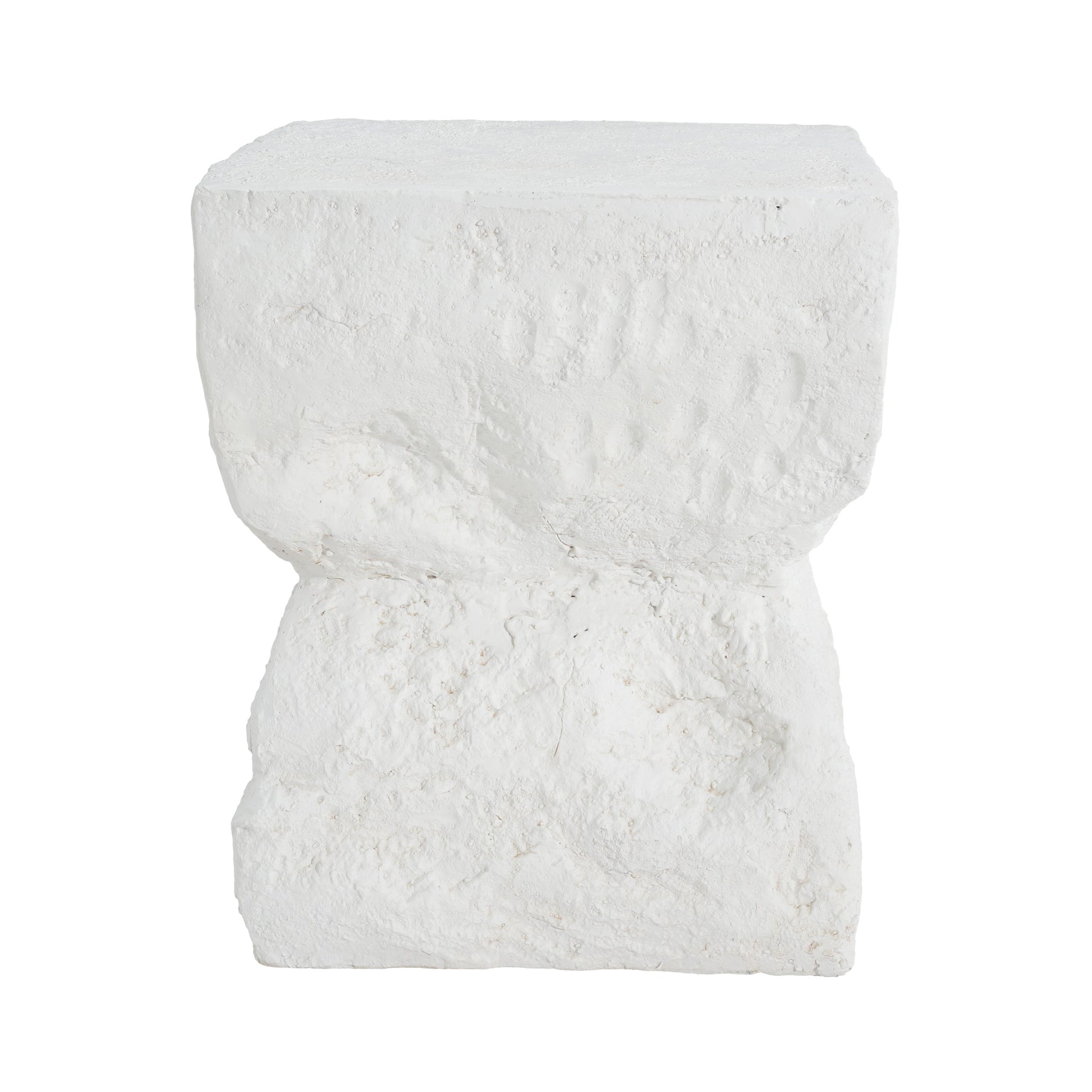 - Modern minimalist cubic silhouette with a slightly flared base and matte white finish