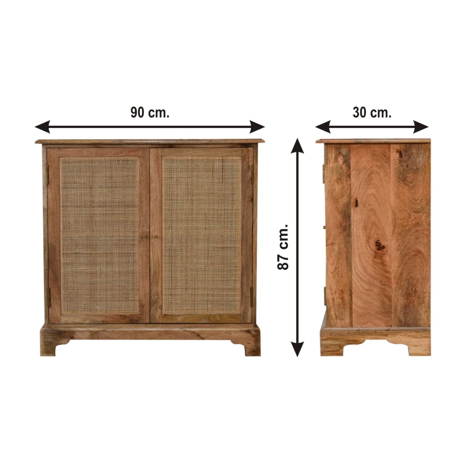 - Stylish Design: Features two hand-woven rattan doors paired with a smooth oak-ish finish for a natural yet modern aesthetic.